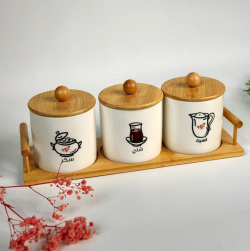 طقم علب بهارات ١٠سم و صيني بامبو