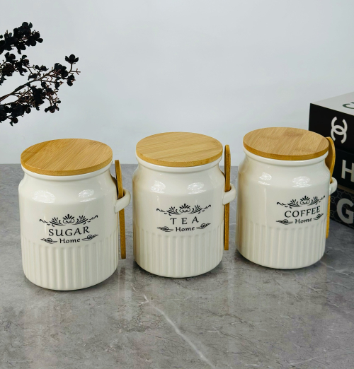 طقم سكر وشايي سيراميك كبير ويه ملاعق B