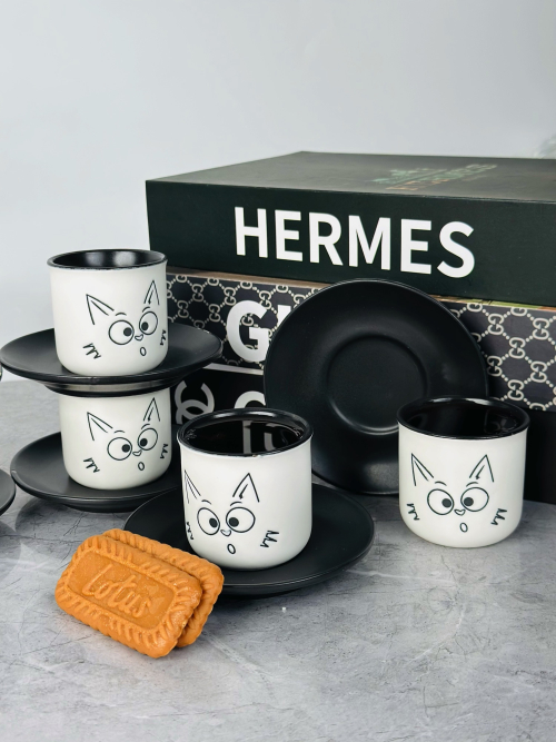 طقم 6 قطعة فنجان و صحن سیرامیک نقش مشكل