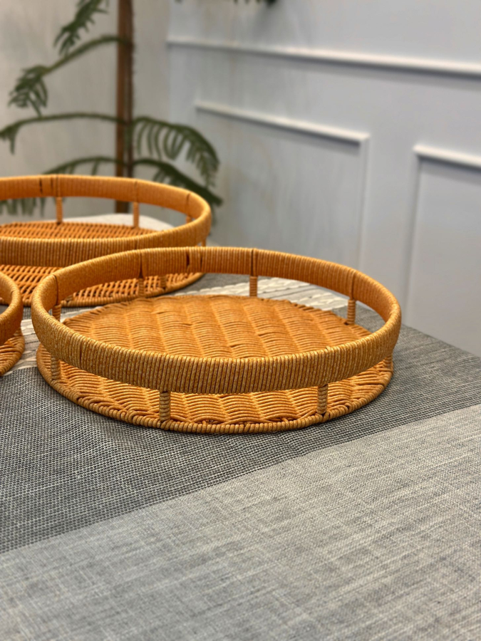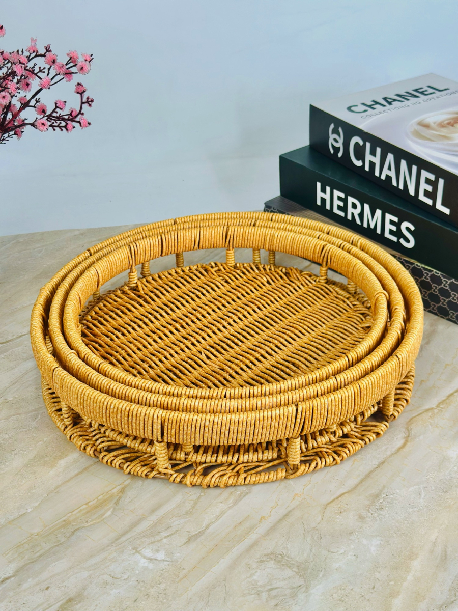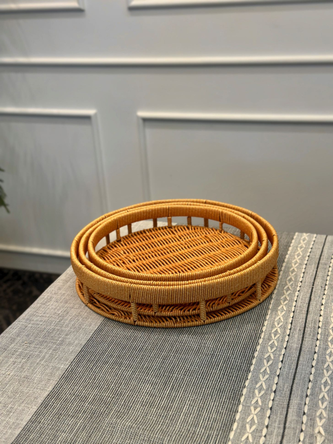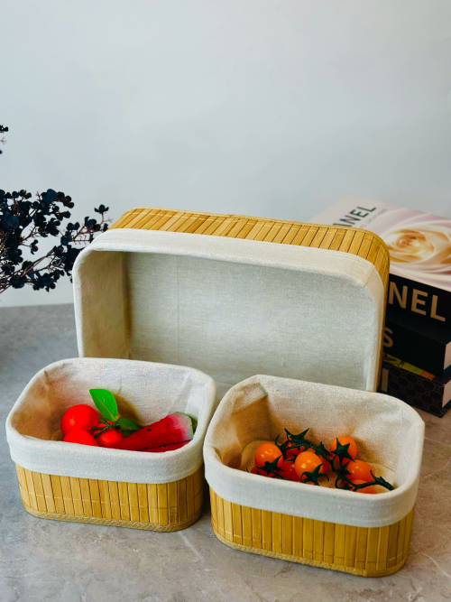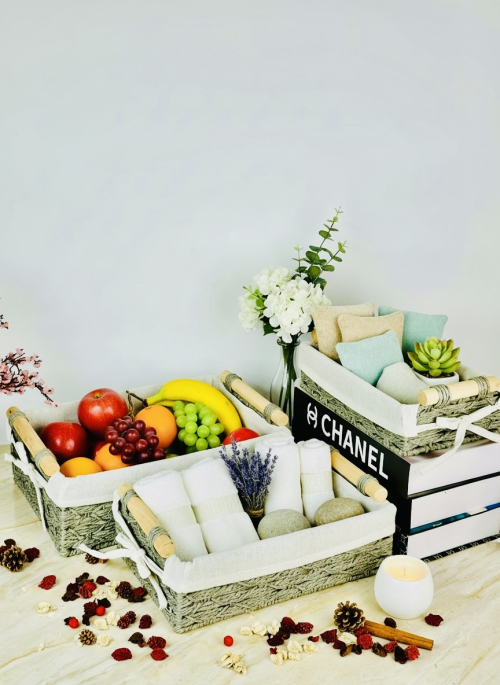طقم سلة او صيني خوص ثلاثي مستطيل MO3