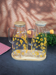 طقم سكر و شايي و قهوه سيراميك و قاعدة بامبو bh-1