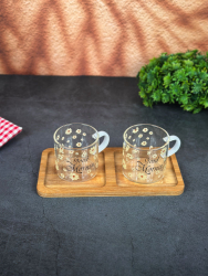 طقم سكر و شايي و قهوه سيراميك و قاعدة بامبو bh-4