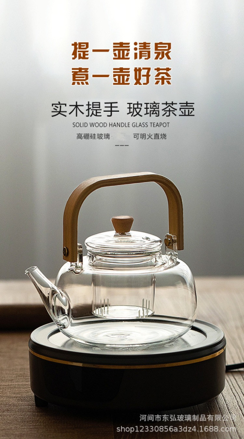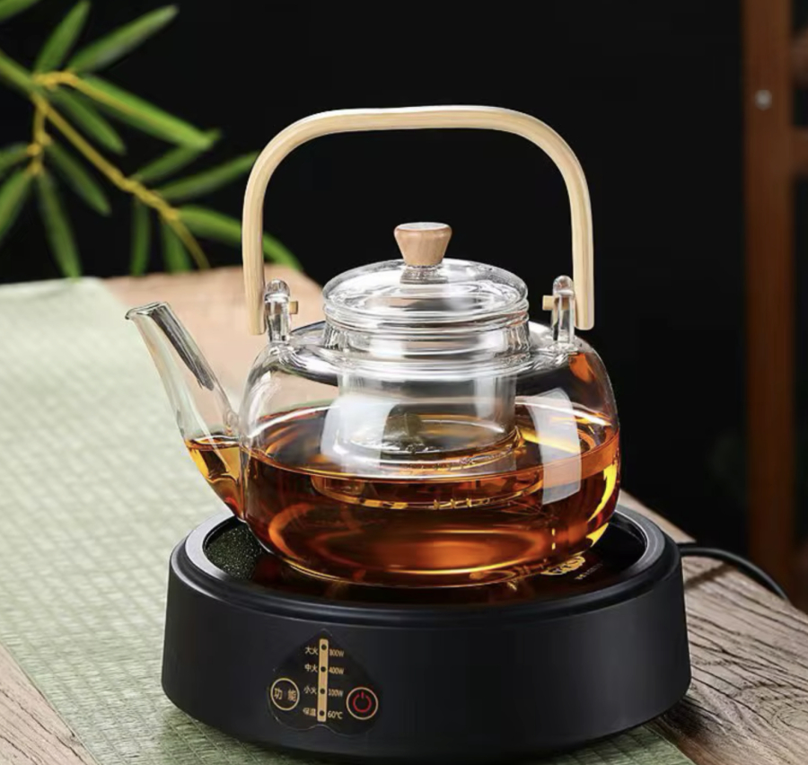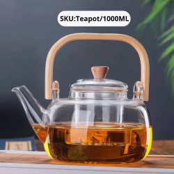 قوري زجاج يد خشبي 1 لتر