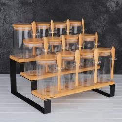 طقم سكر و شايي و قهوه سيراميك و قاعدة بامبو bh-2