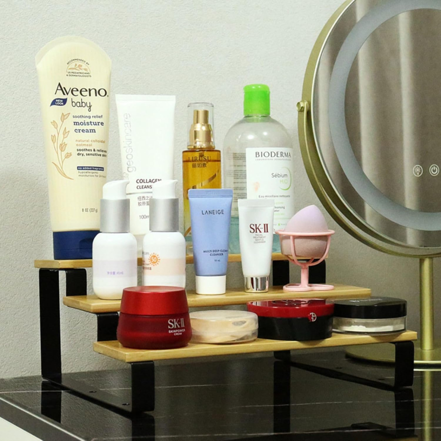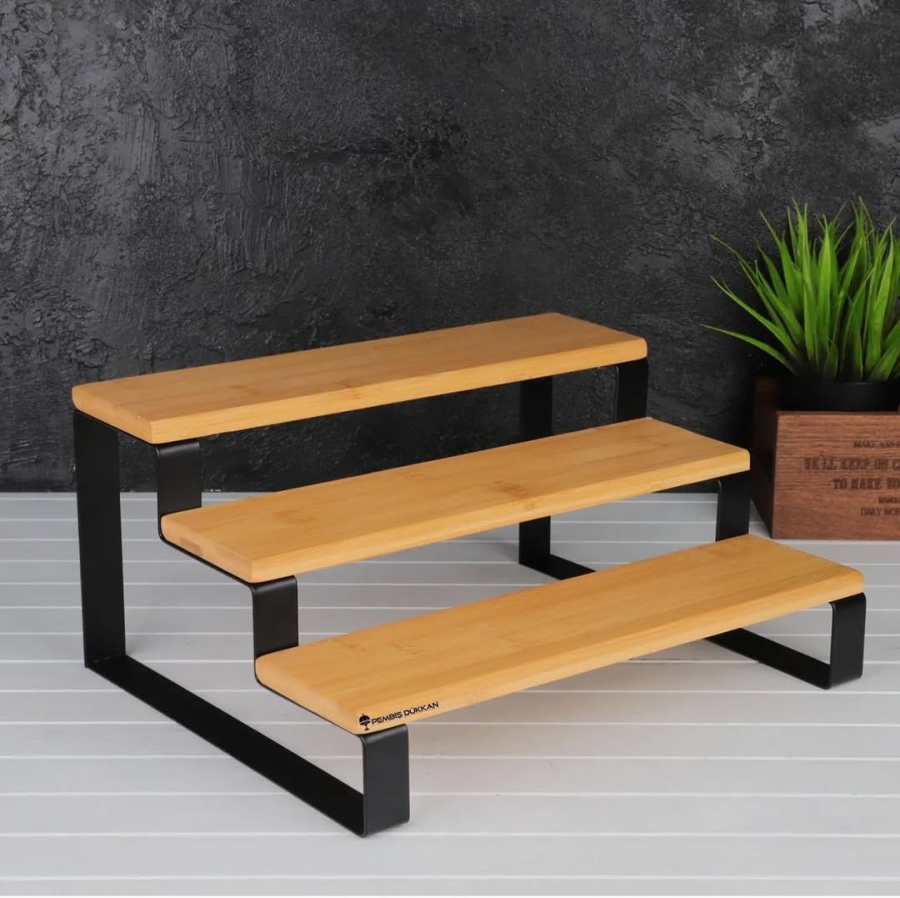 رف منظم بامبو ثلاث طبق خشبي وسط 26*19*40سم