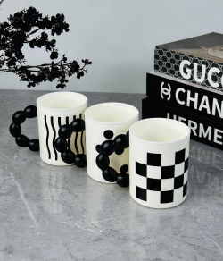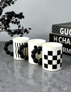 طقم سكر و شايي و قهوه سيراميك و قاعدة بامبو bh-6