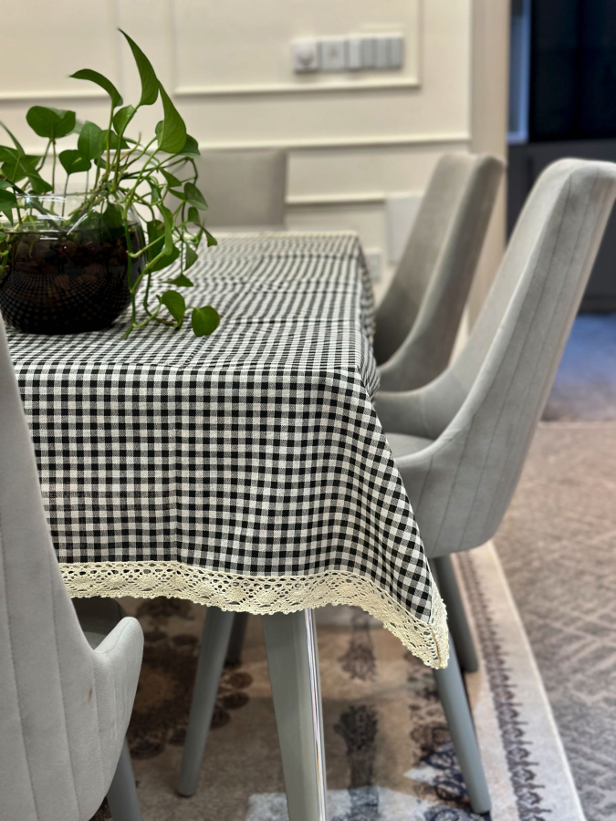 غلاف طاولە اسود مربعات 140x140 اطار نقش
