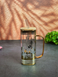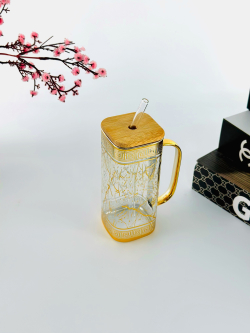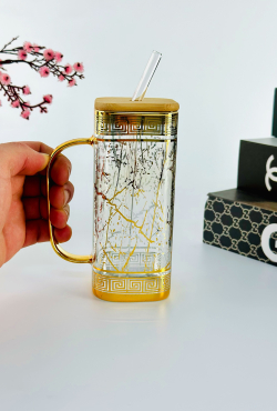 طقم 6 اكوب شايي زجاج شكل برميل اطار ذهبي