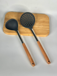 طقم سكر و شايي و قهوه سيراميك و قاعدة بامبو bh-2