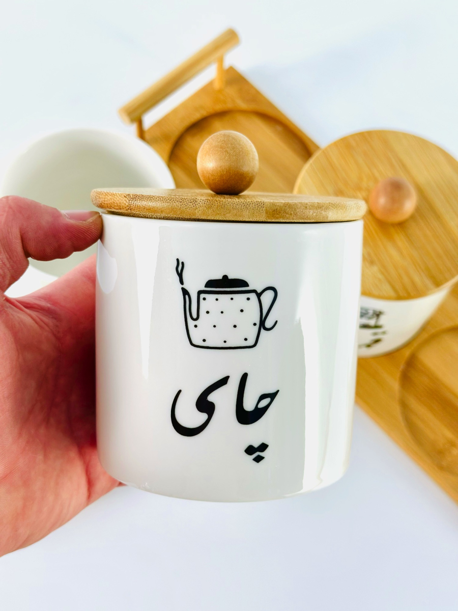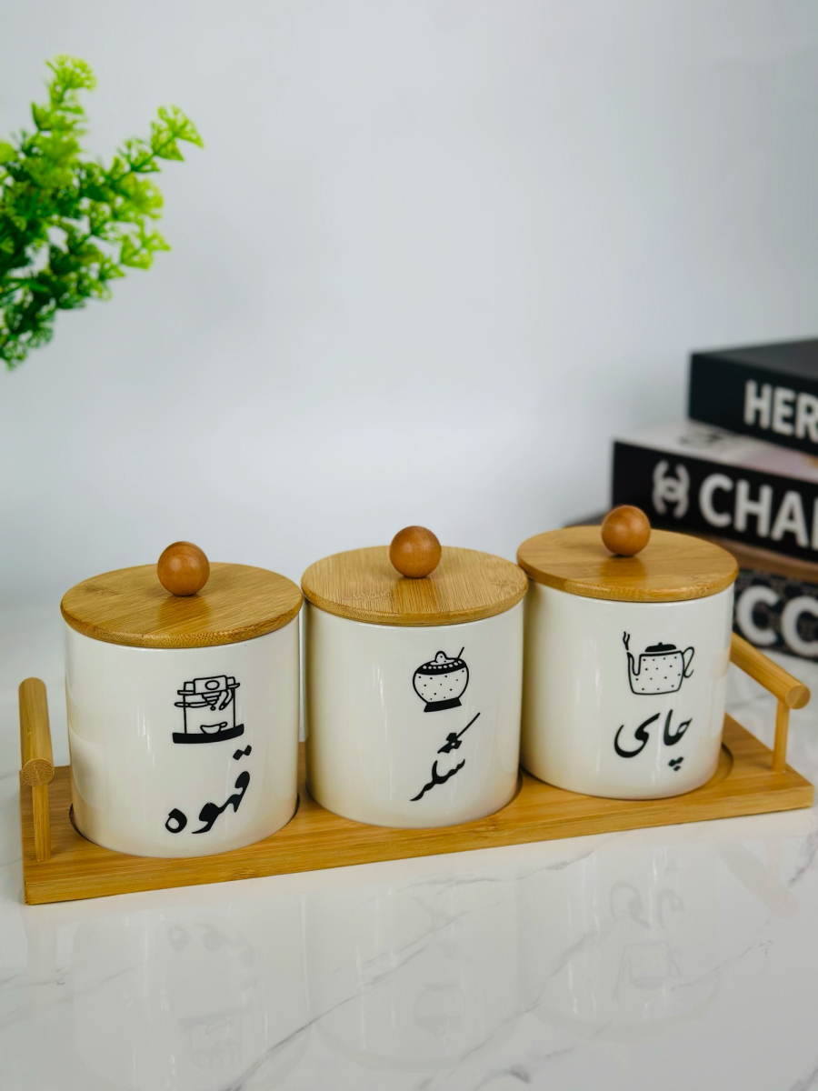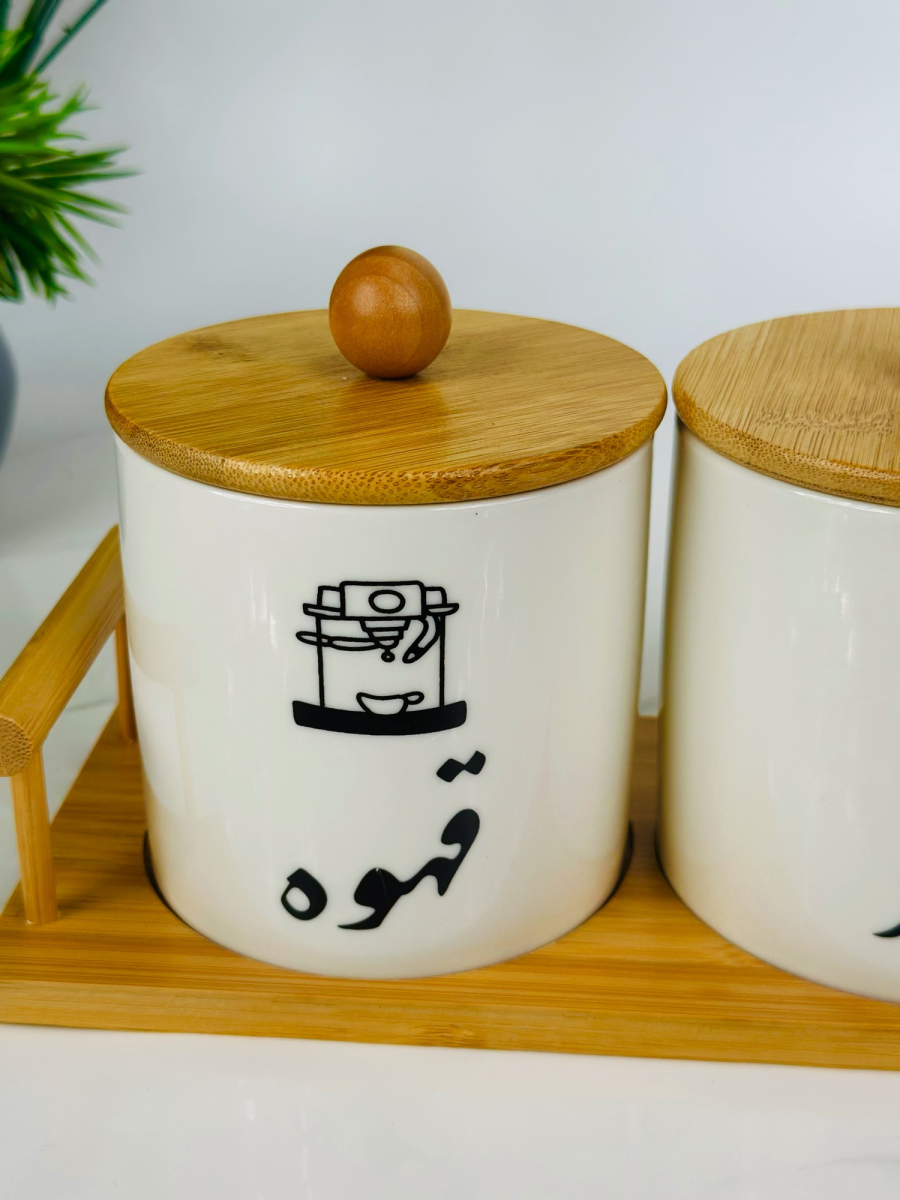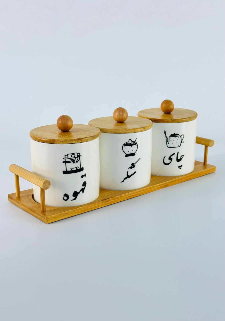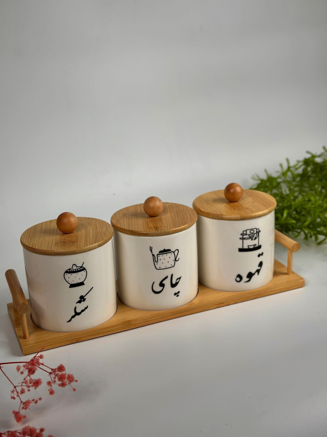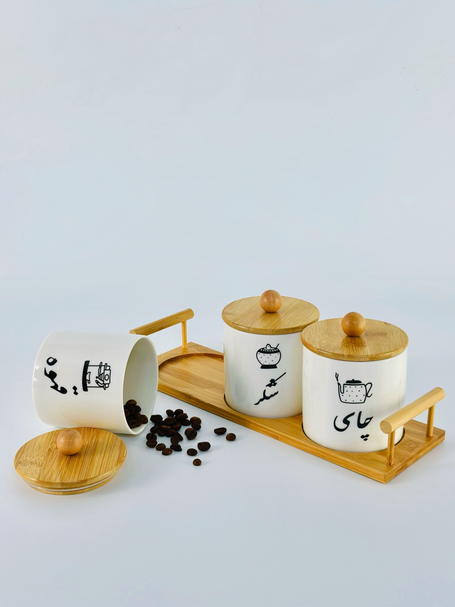 سيت بهارات رباعي سيراميك مع ستاند بامبو 4061