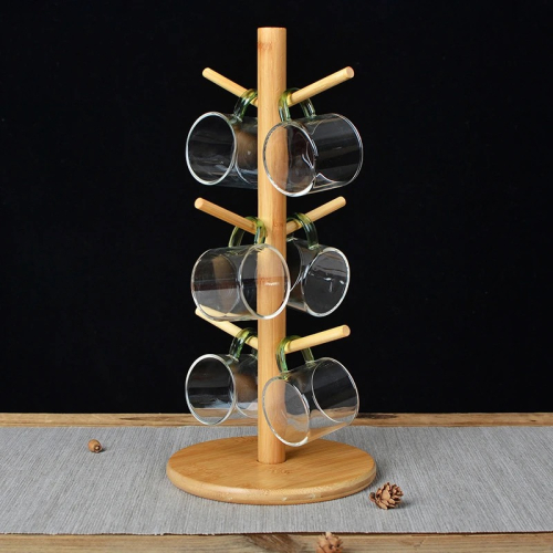 طقم سكر و شايي و قهوه سيراميك و قاعدة بامبو bh-4