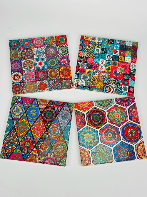 غلاف طاولە ابو الورد 140x140 وردي و اخضر