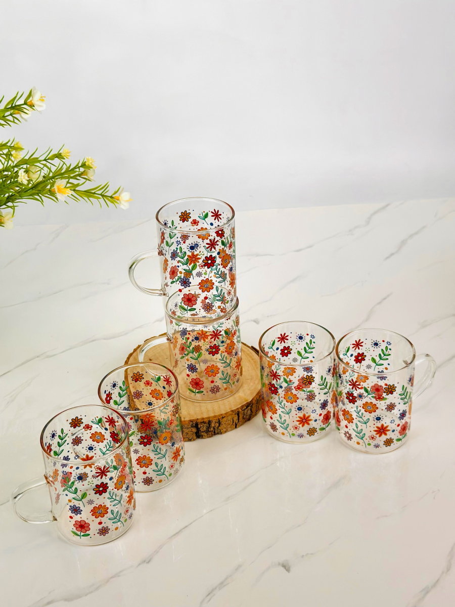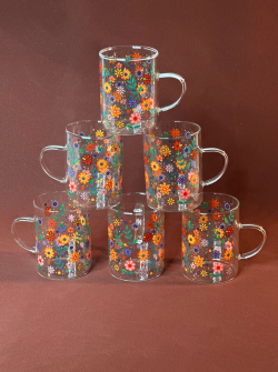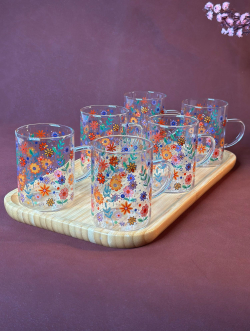 طقم اكوب ٦ عدد زجاج يد خرز كبير و ثقيل