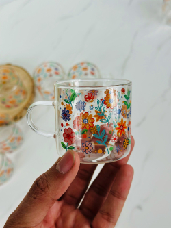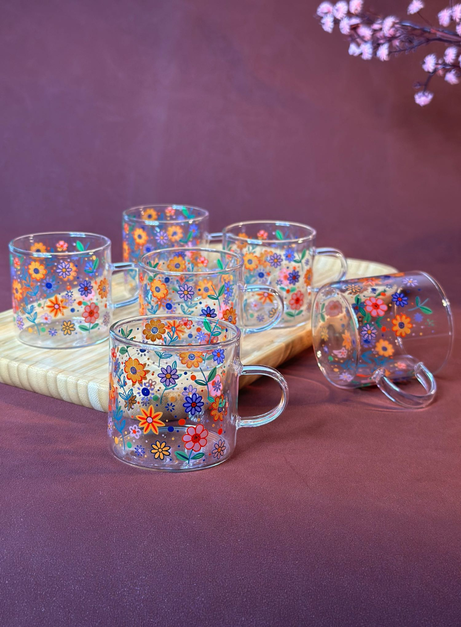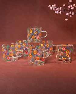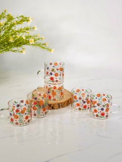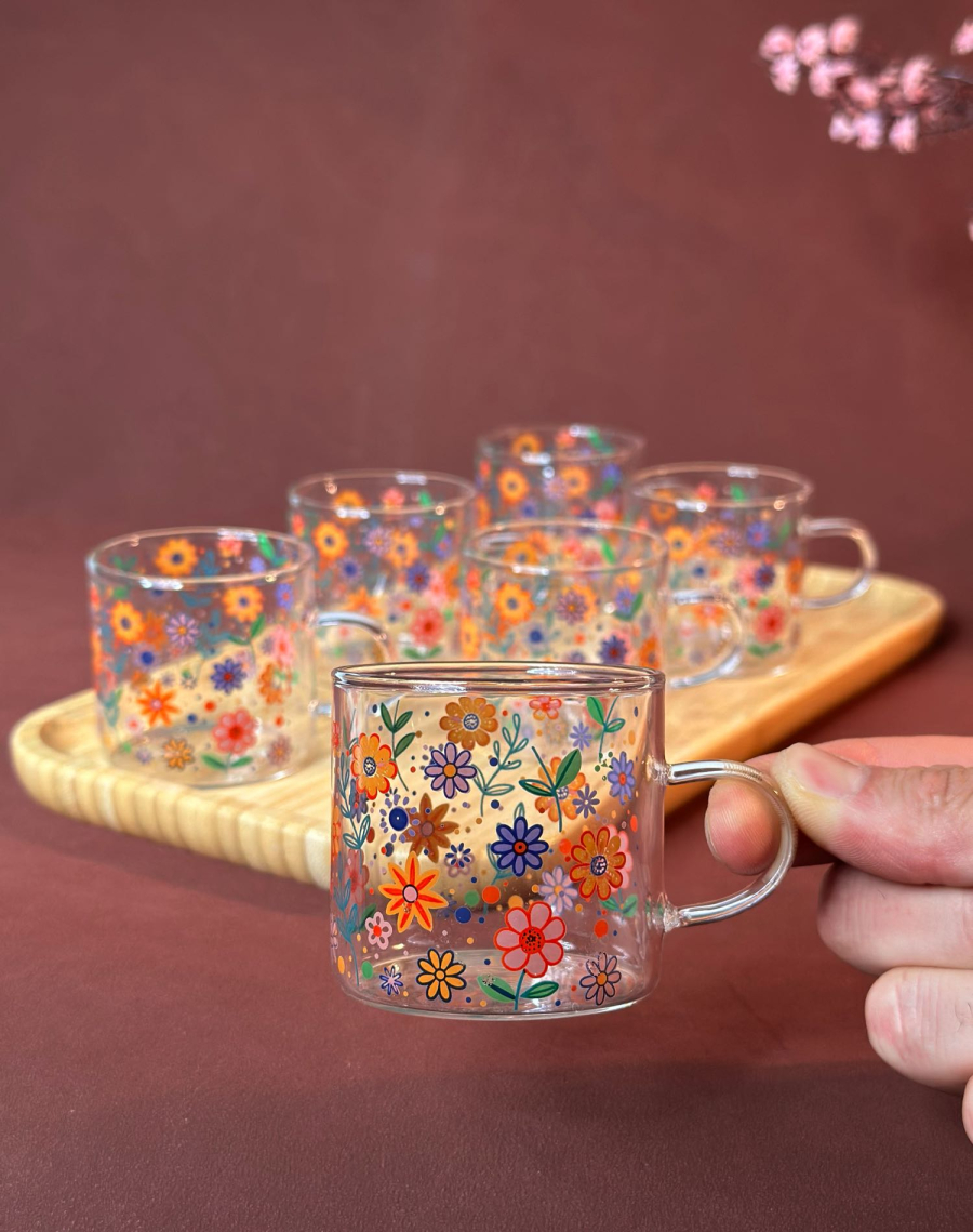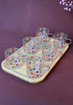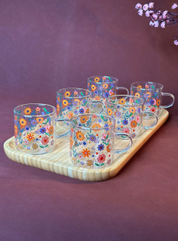 طقم 6 اكوب شايي زجاج اطار ذهبي