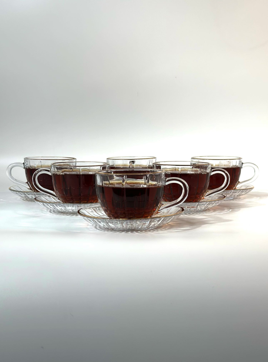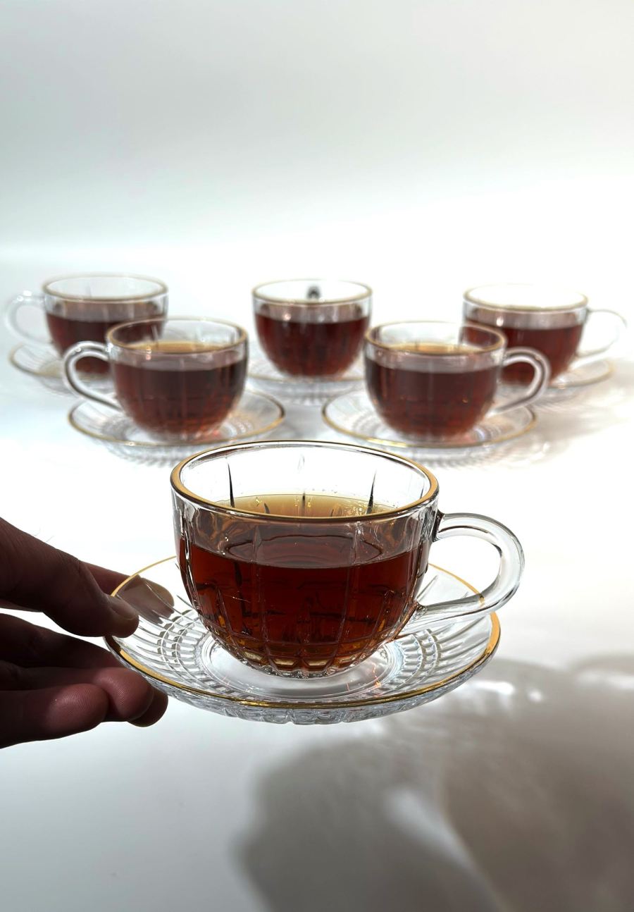 طقم 6 عدد اکوب و صحن اطار ذهبي کبیر 1718