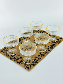 طقم 6 قطعة اكوب و صحن سیرامیک نقش ذهبي - E