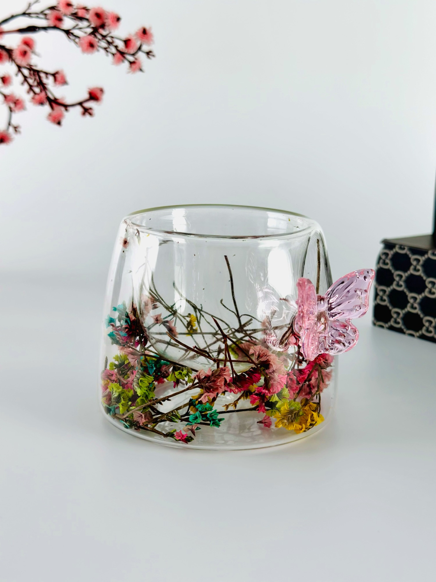 اكوب دبل زجاج 210مل يدة فراشة