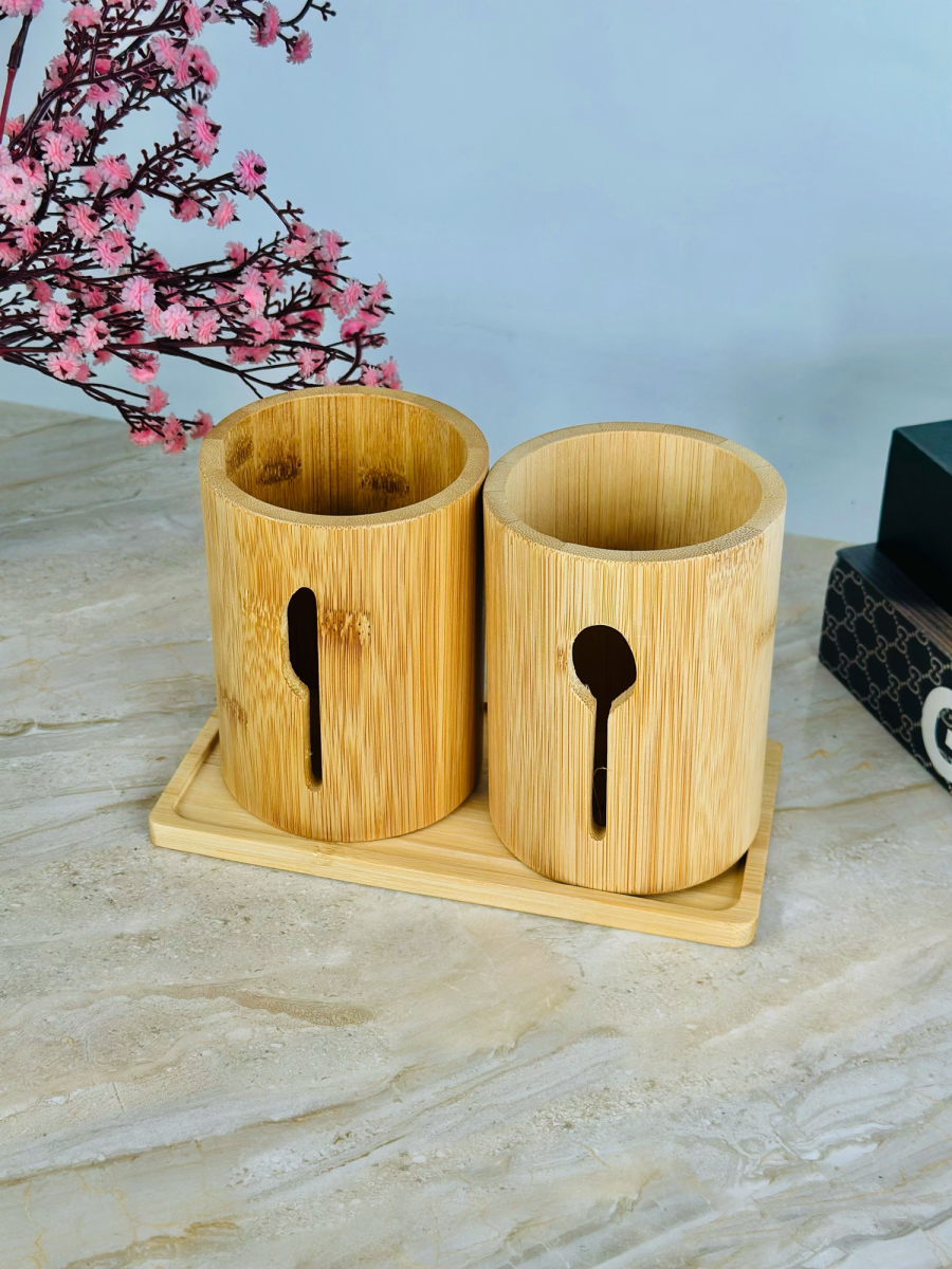 طاقم مكان ملاعق وشوكات بامبو صيني