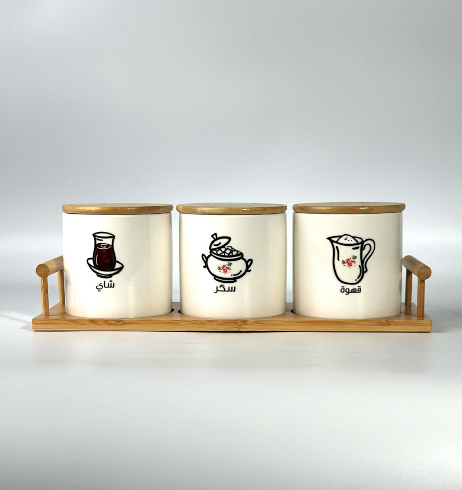 سیت ثلاثي زجاج سکر وشایی ویە ملاعق