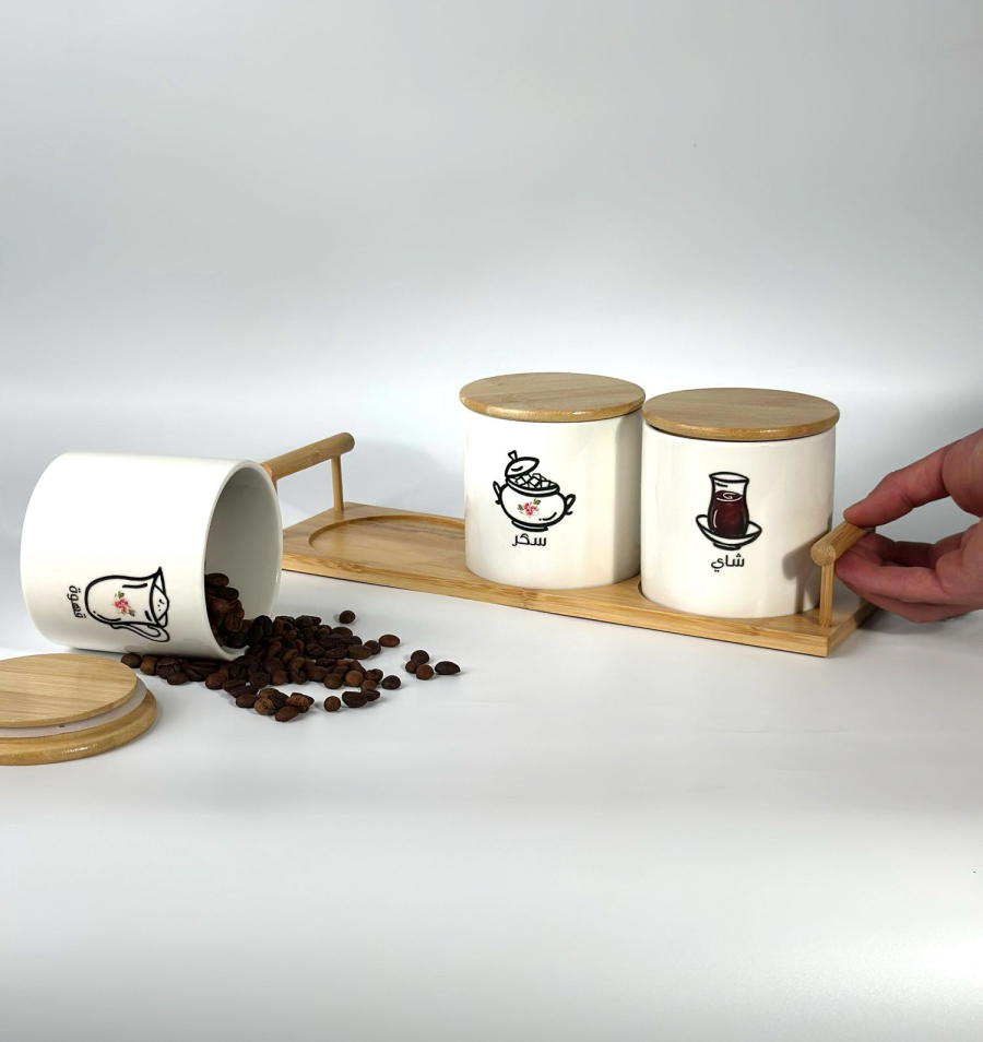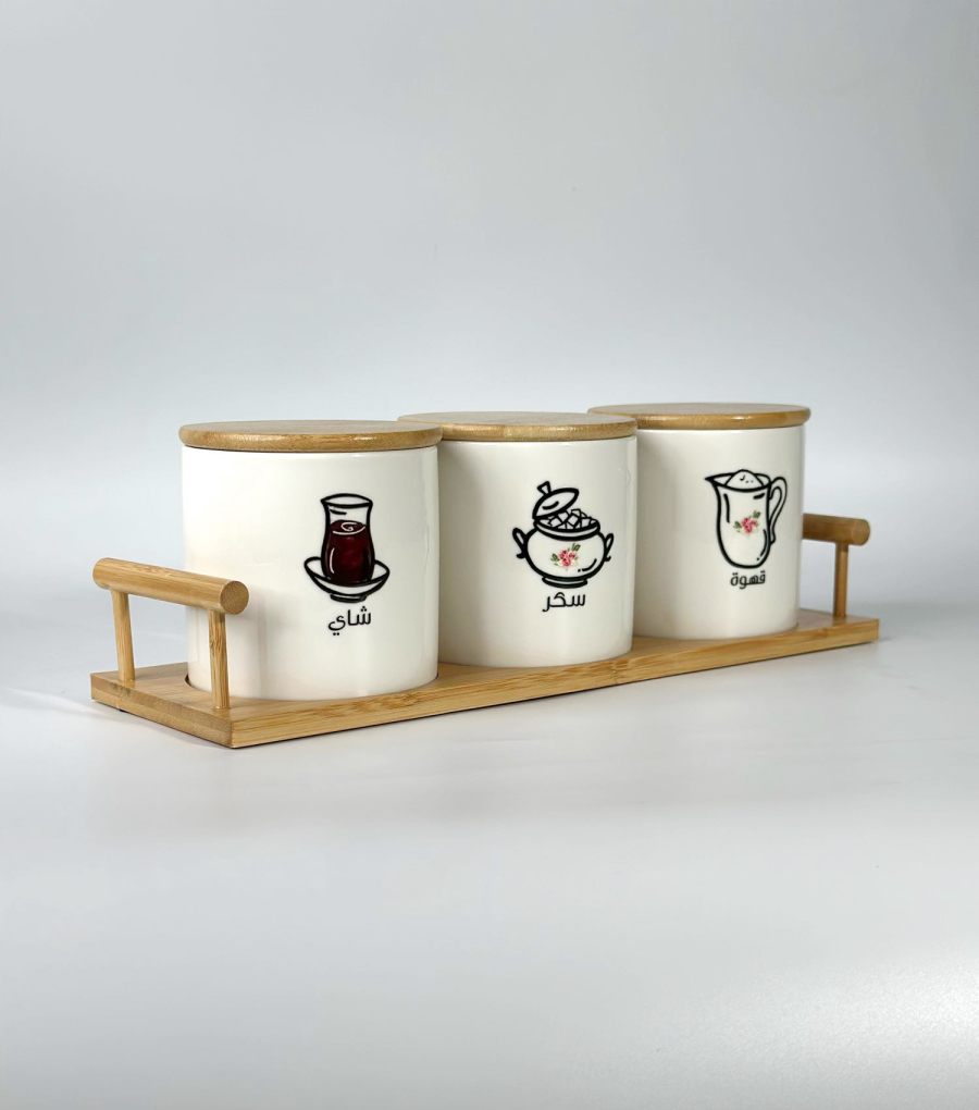 سیت سکر وشایی مع ستاند بامبو صغير صورة