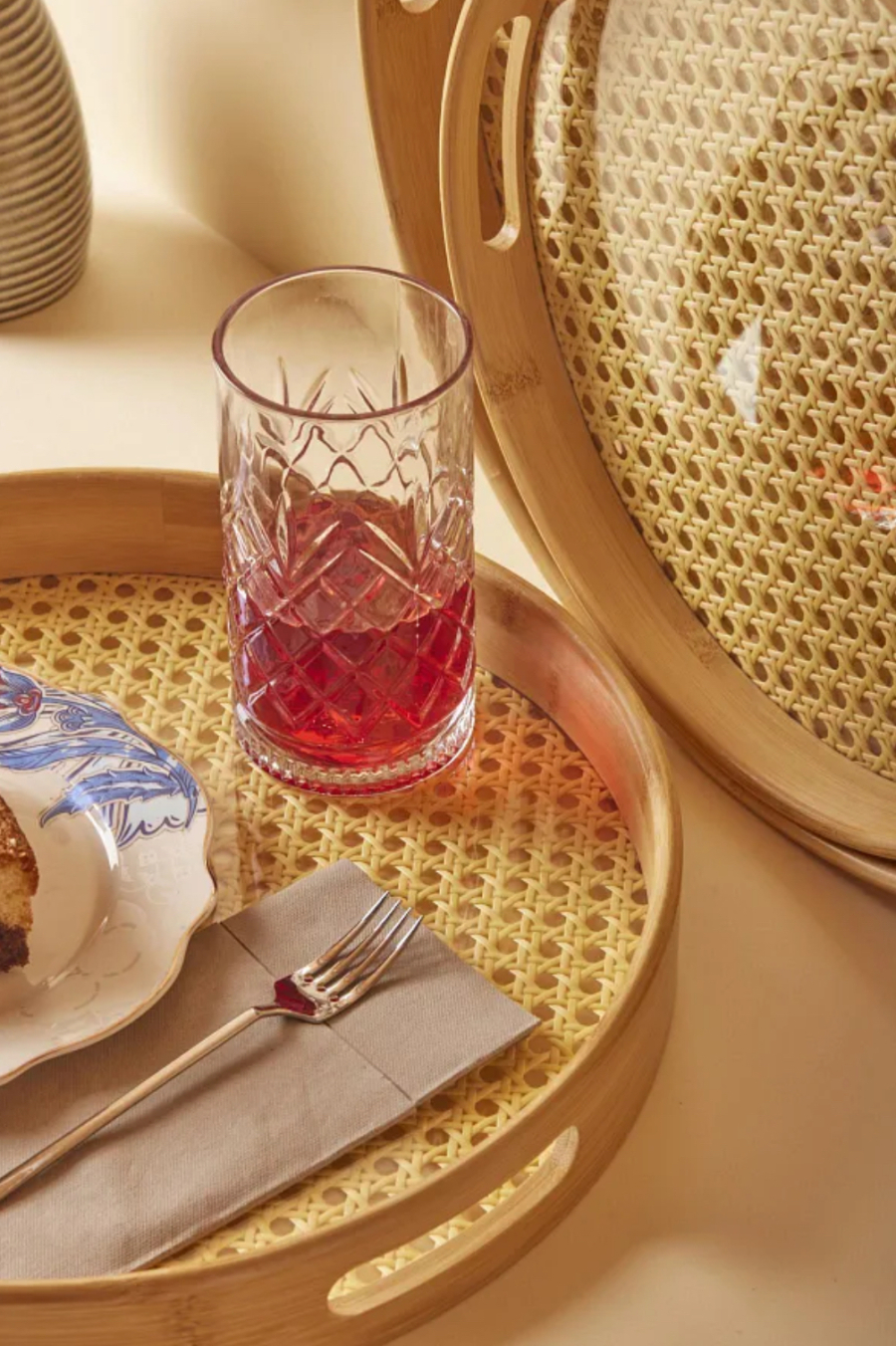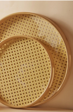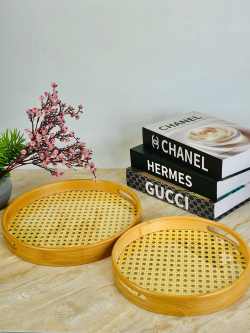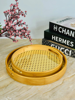 طقم صيني خشبي بامبو دائري قطعتين