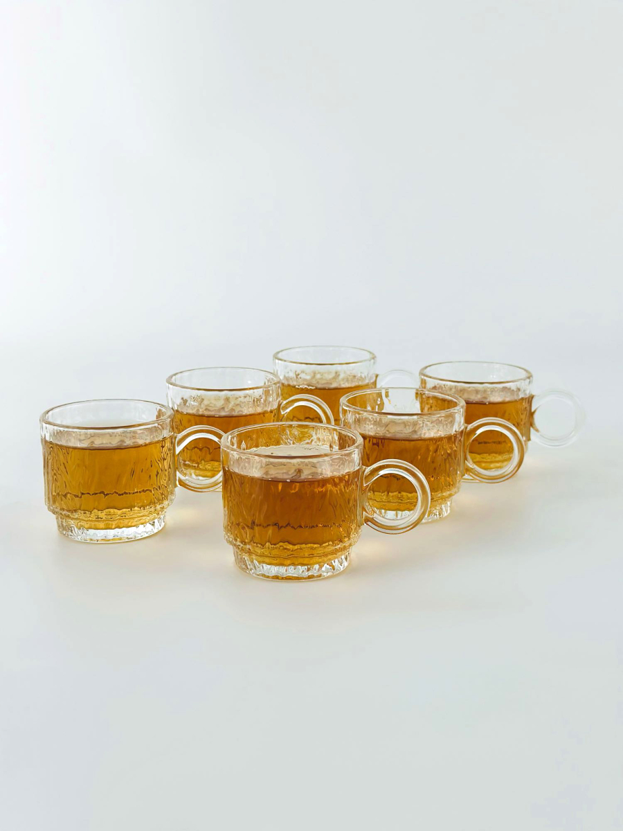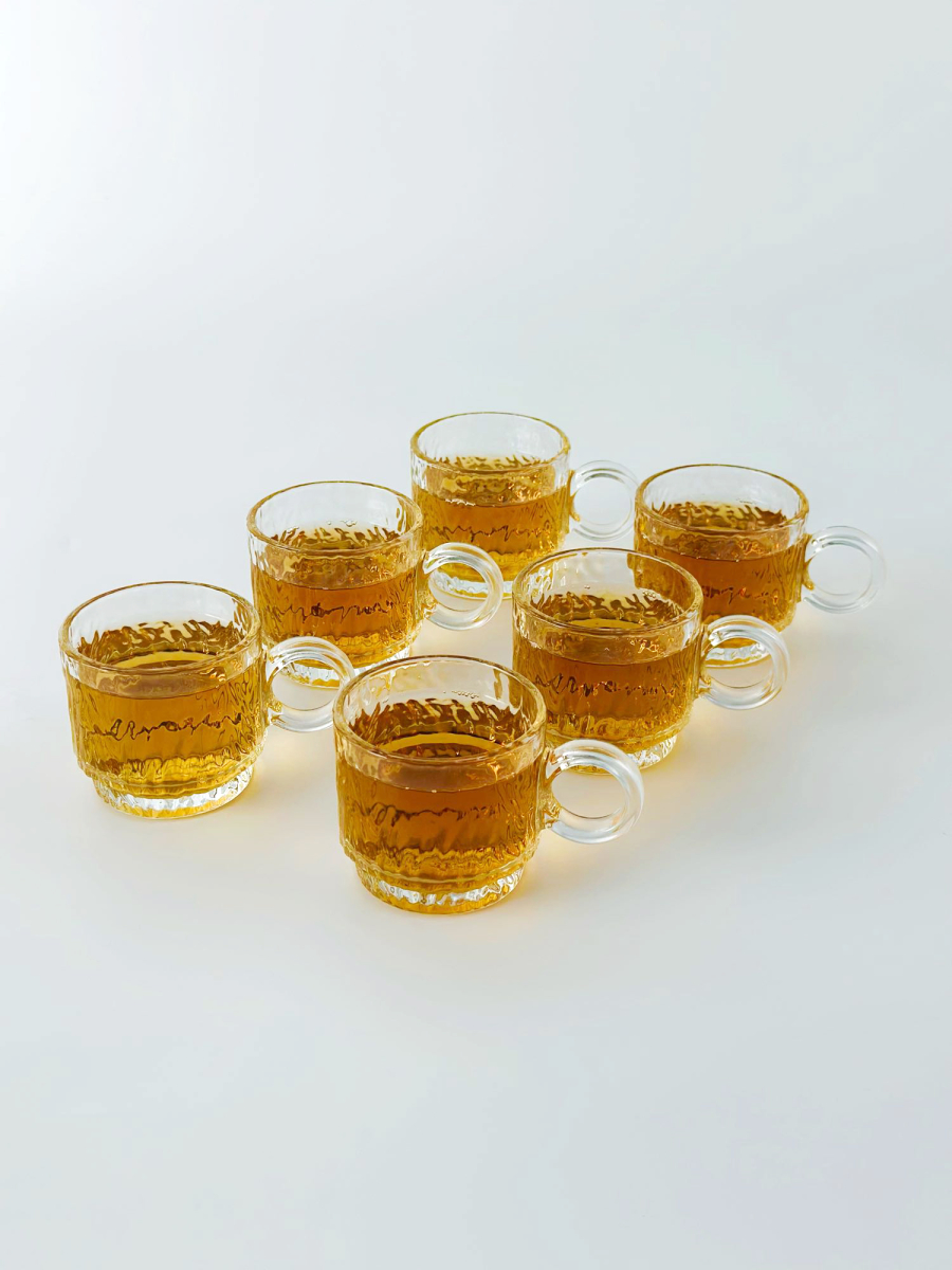 طقم 6 اكوب شايي زجاج شكل برميل سادة