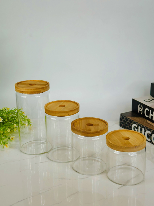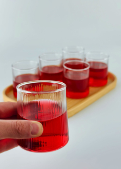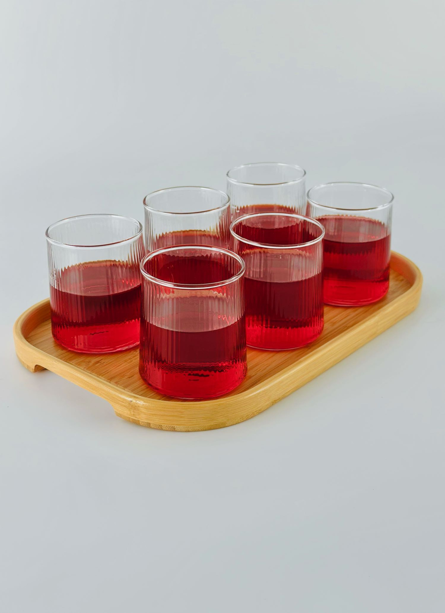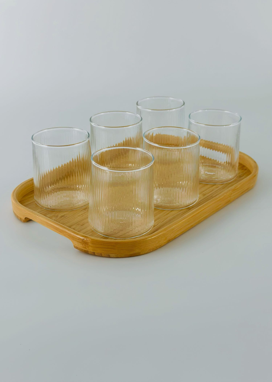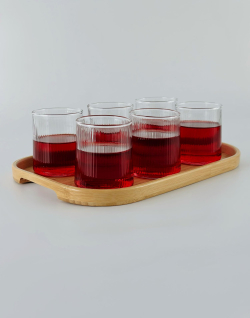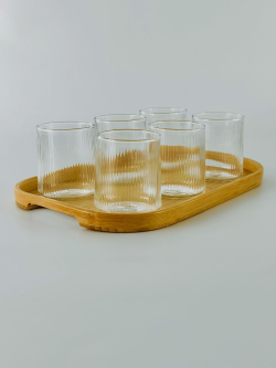 طقم سكر وشايي زجاج قبق خشبي رباعي