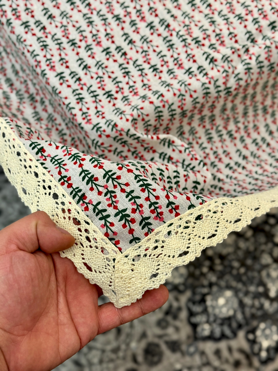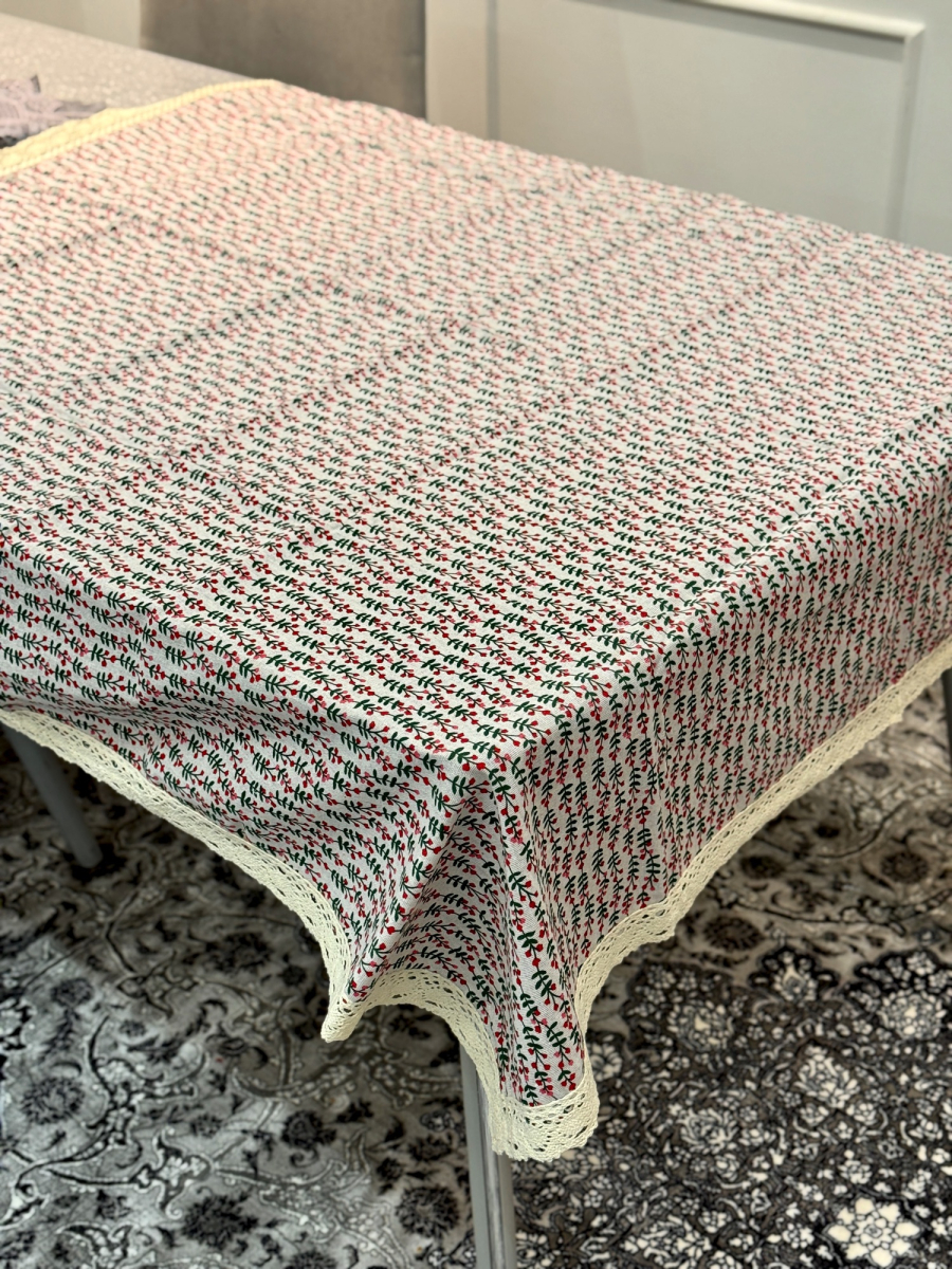 غلاف طاولە ابو الورد 140x140 وردي و اخضر