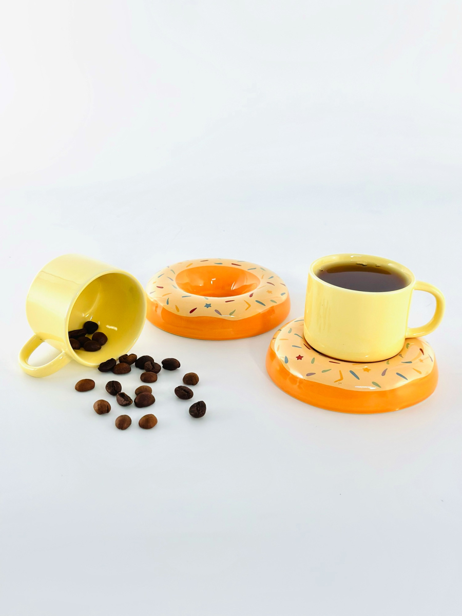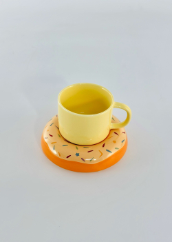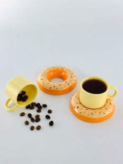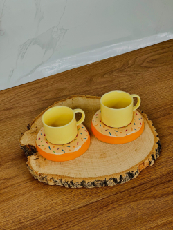 طقم 6 قطعة اكوب و صحن سیرامیک نقش ذهبي - J