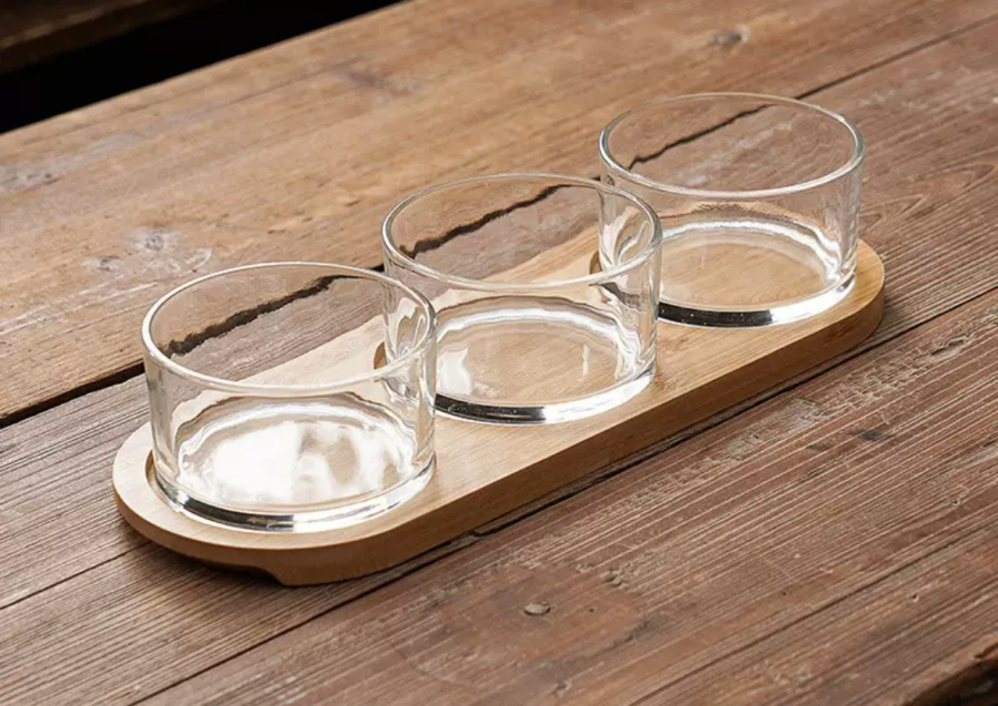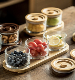 طقم سكر و شايي و قهوه سيراميك و قاعدة بامبو bh-1