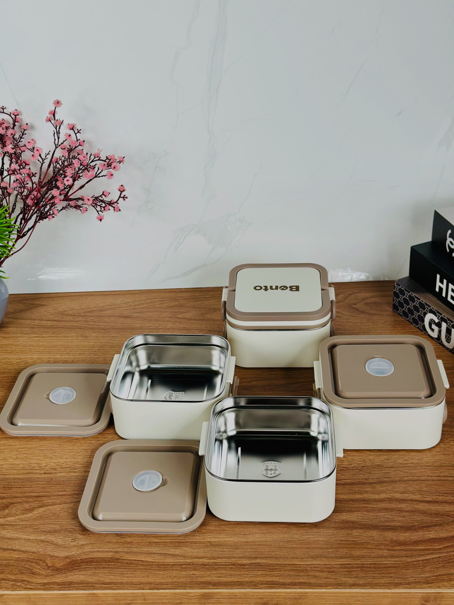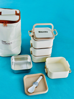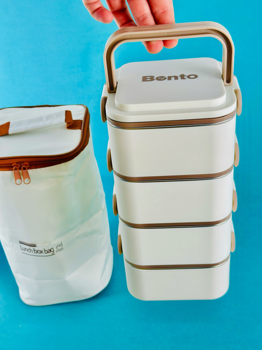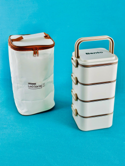 علبة غداء من ٤ طبق اصلي و غلاف مربع