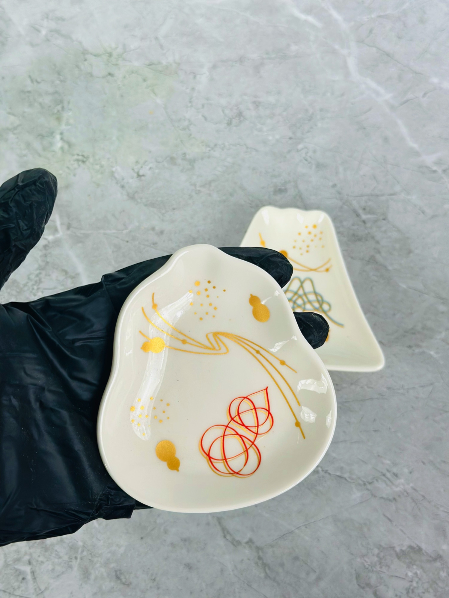 طقم 6 قطعة اكوب و صحن سیرامیک نقش ذهبي - A