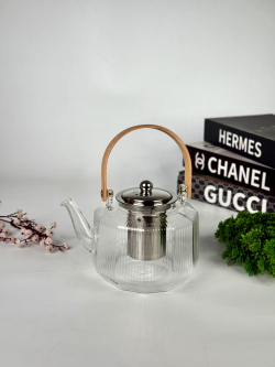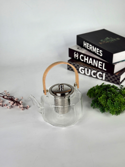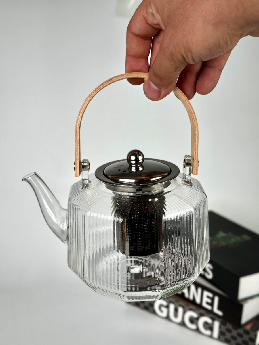 طقم سكر وشايي زجاج قبق خشبي رباعي