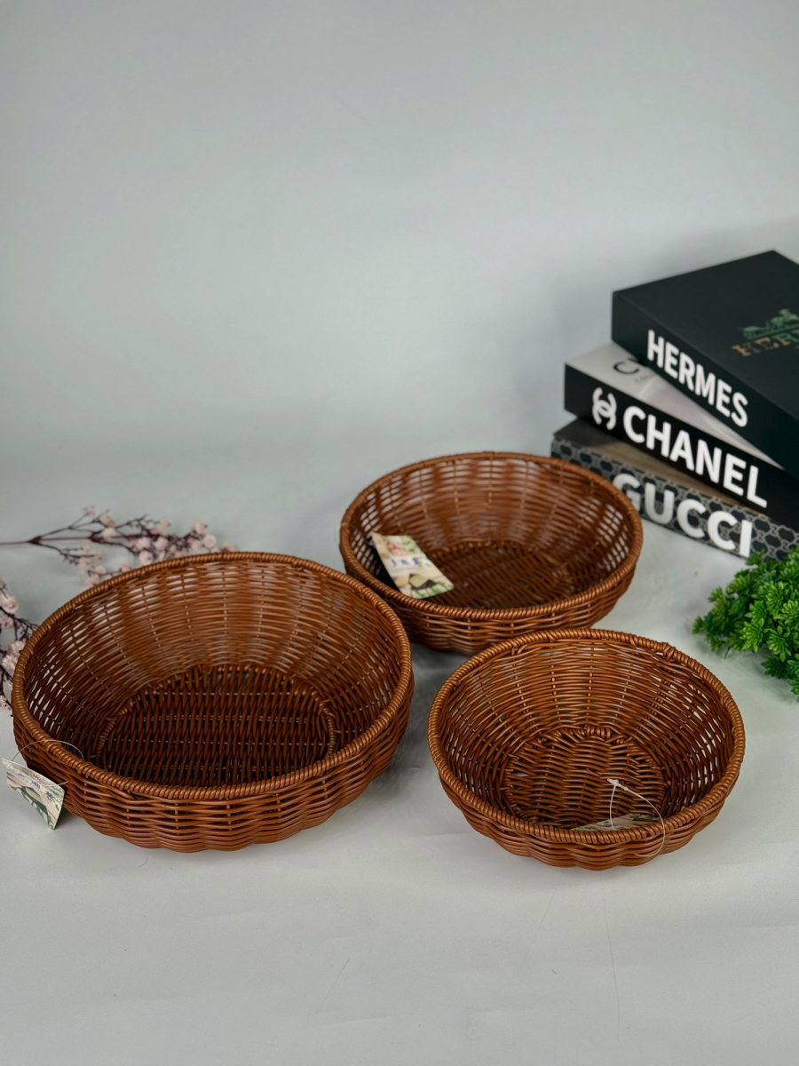 طقم سلة ثلاثي عميق قهوائي