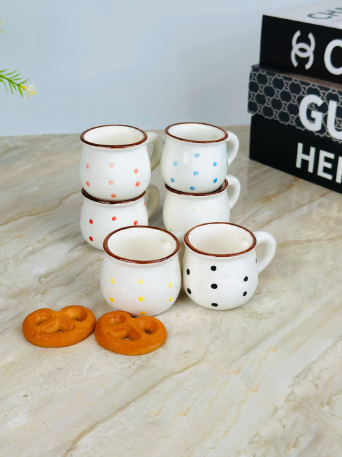 طقم ٦ عدد فنجان سیرامیک ابیض صغير نقطة ملون
