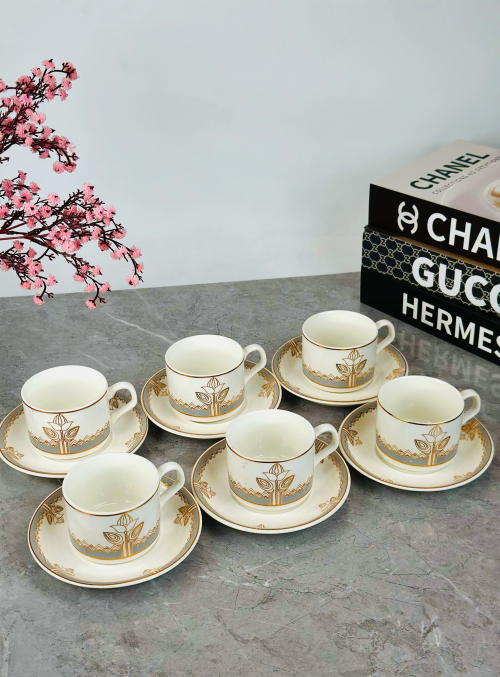 طقم 6 قطعة اكوب و صحن سیرامیک نقش ذهبي - I