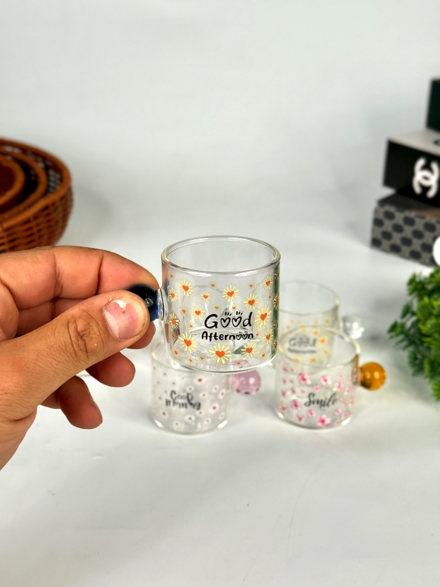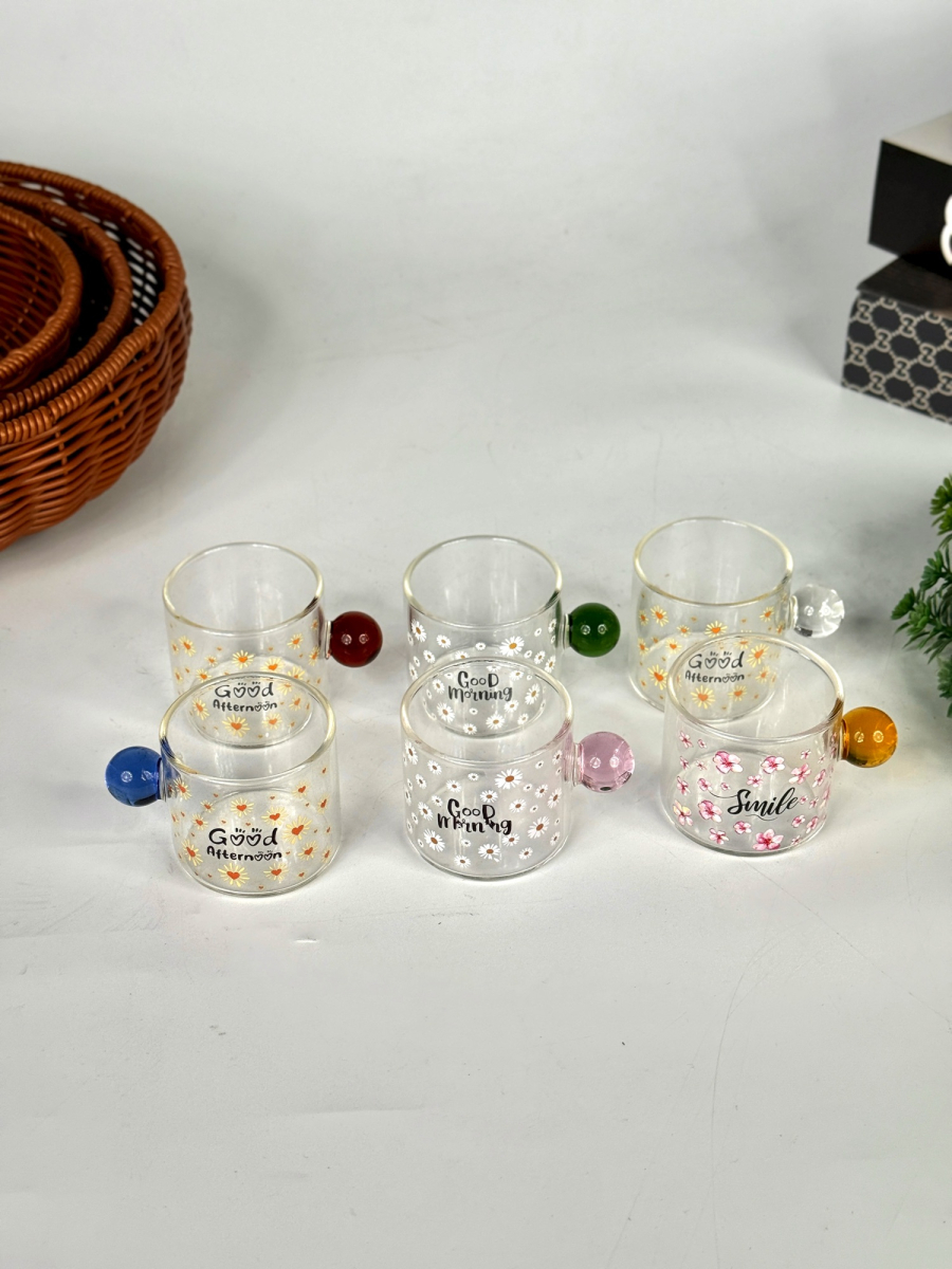 طقم 6 اكوب صغير بايريكس good morning ملون ید دائري