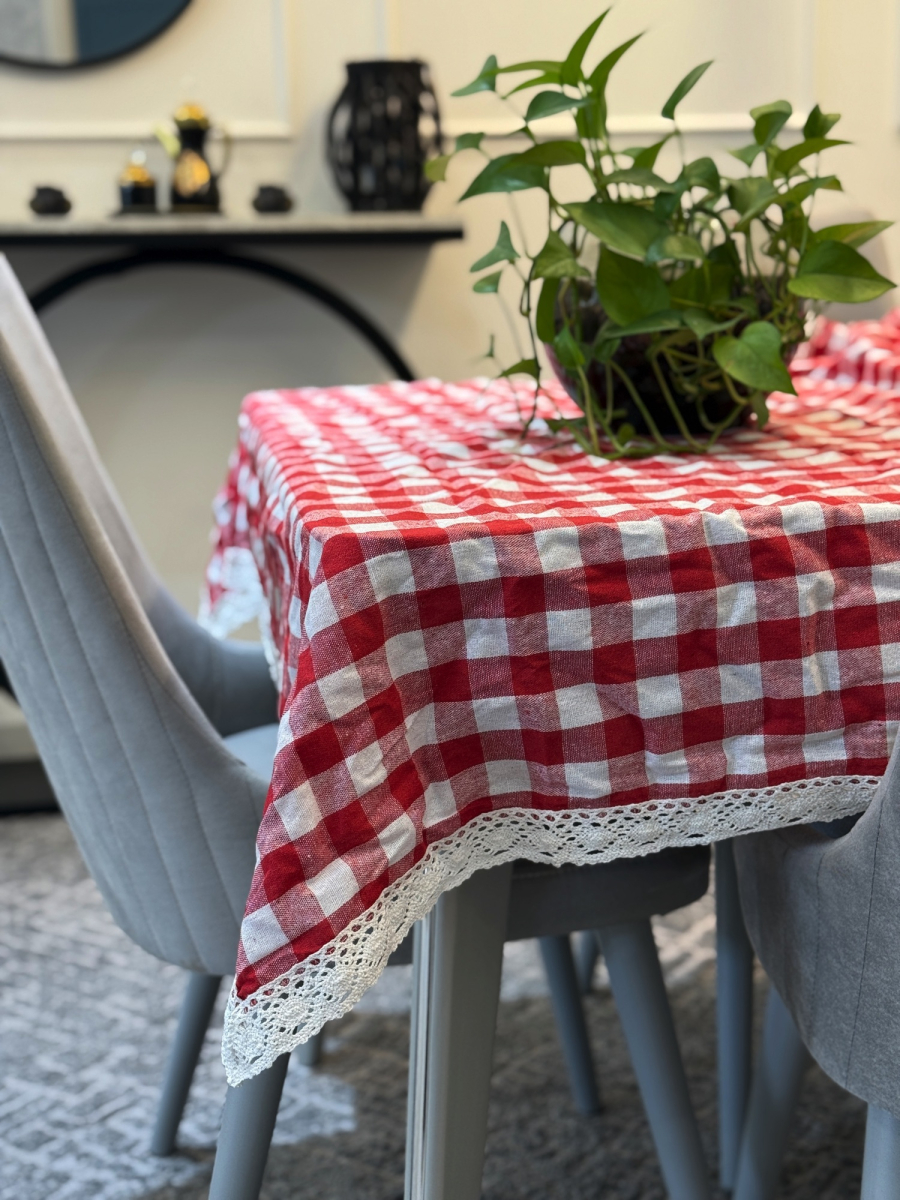 غلاف طاولە مربعات كبير 140x220سم احمر