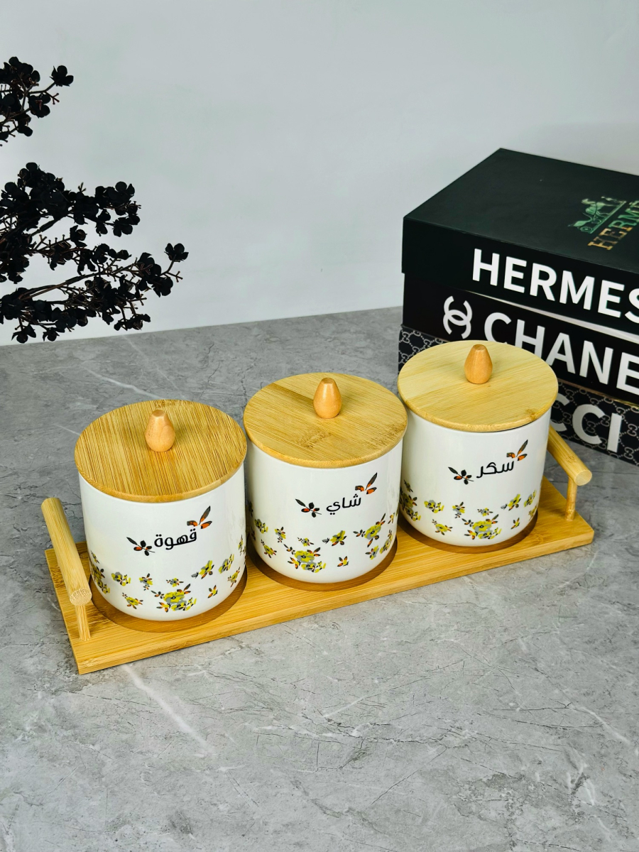 طقم سكر و شايي و قهوه سيراميك قياس صغير J-5