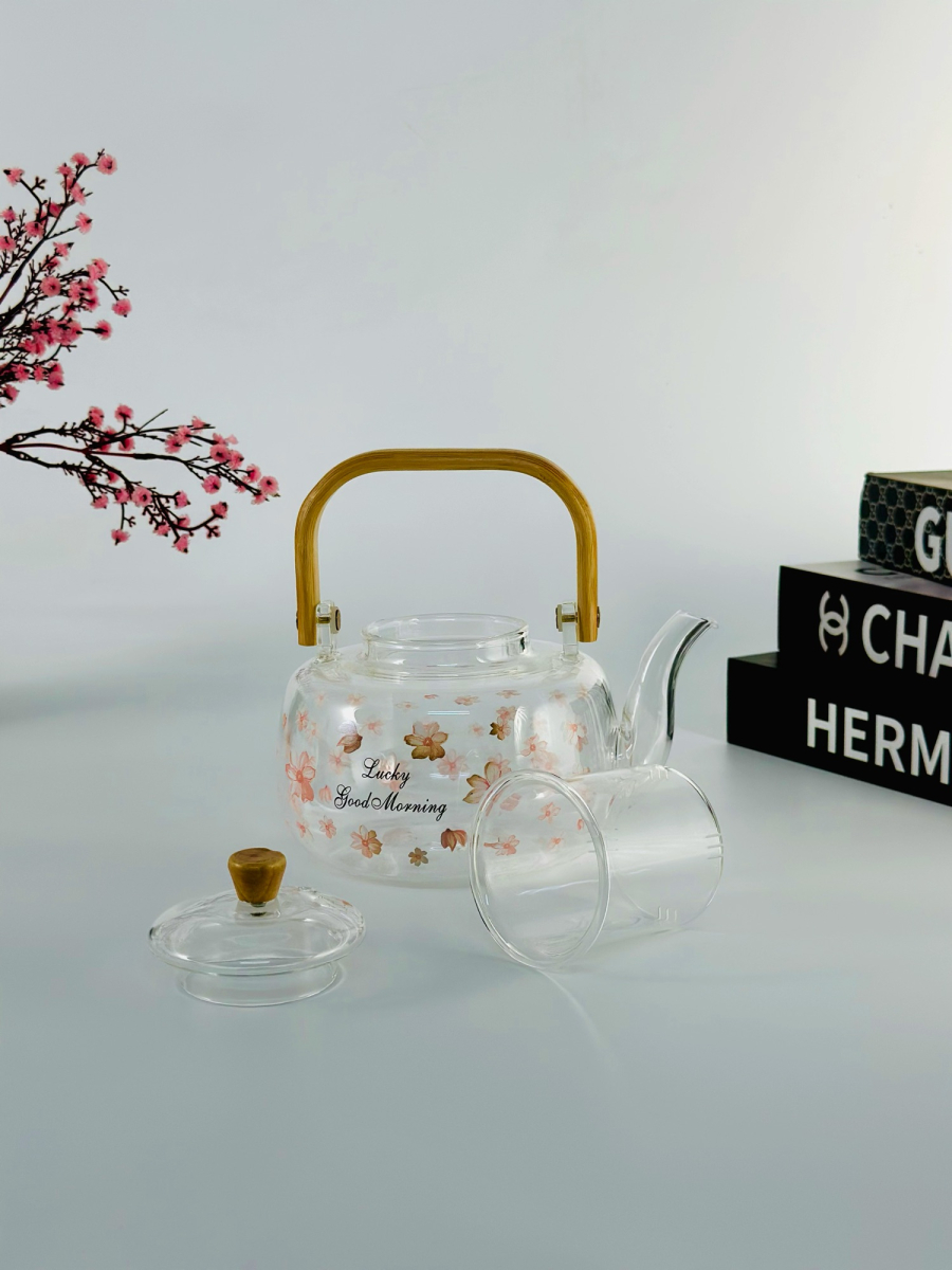 طقم سكر وشايي زجاج قبق خشبي رباعي