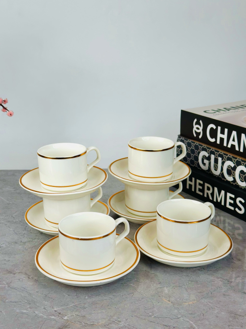 طقم 6 قطعة اكوب و صحن سیرامیک نقش ذهبي - E