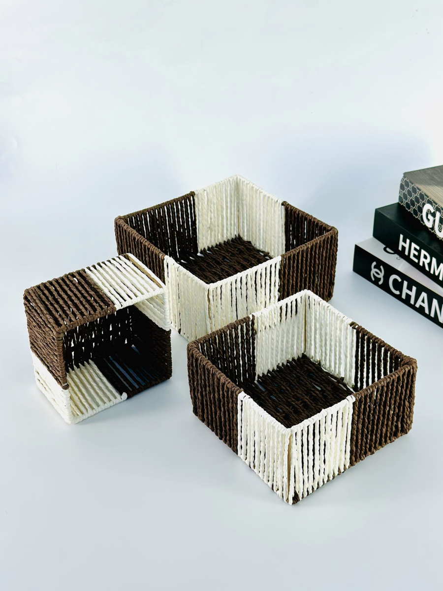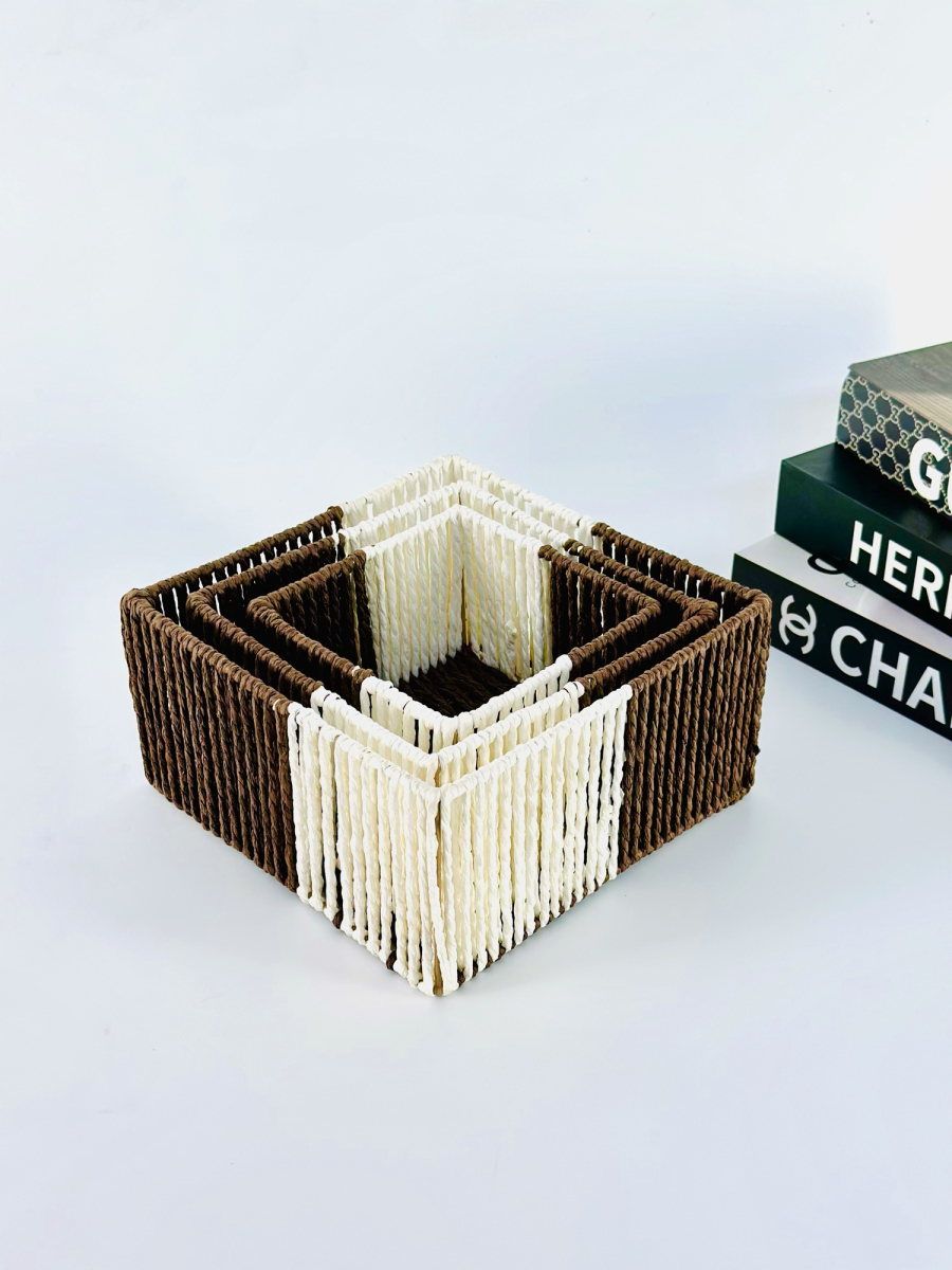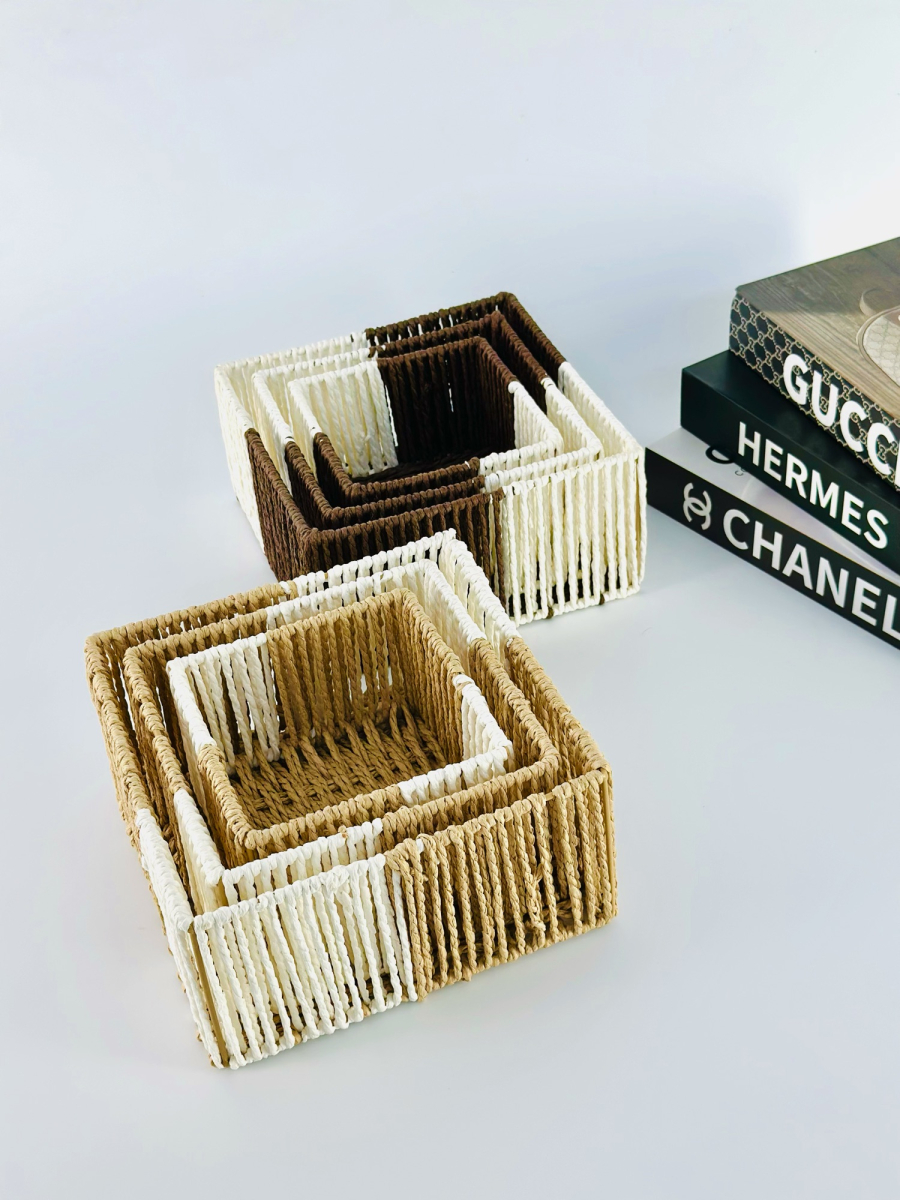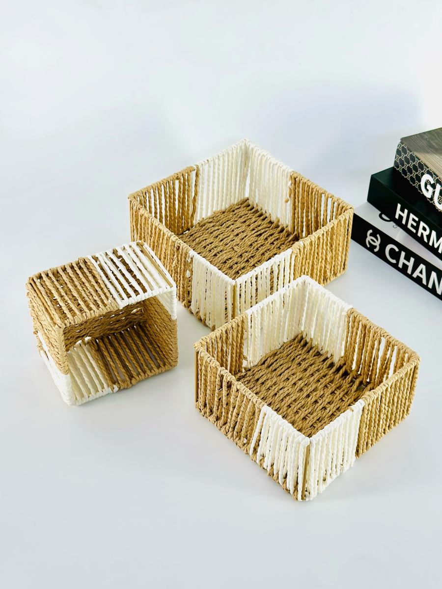طقم سلة ثلاثي مربع عمق لونين