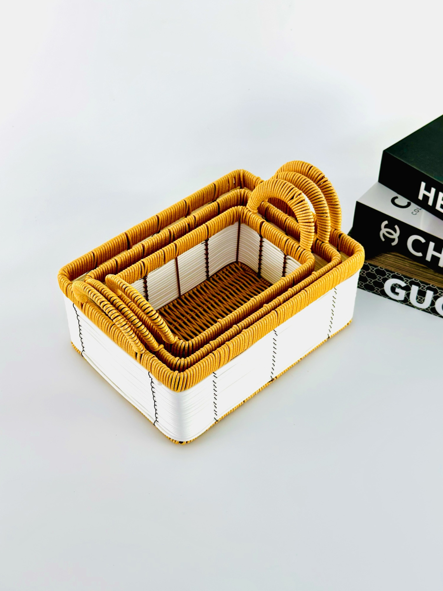 طقم سلة ثلاثي مستطيل ابو يد عمق لونين