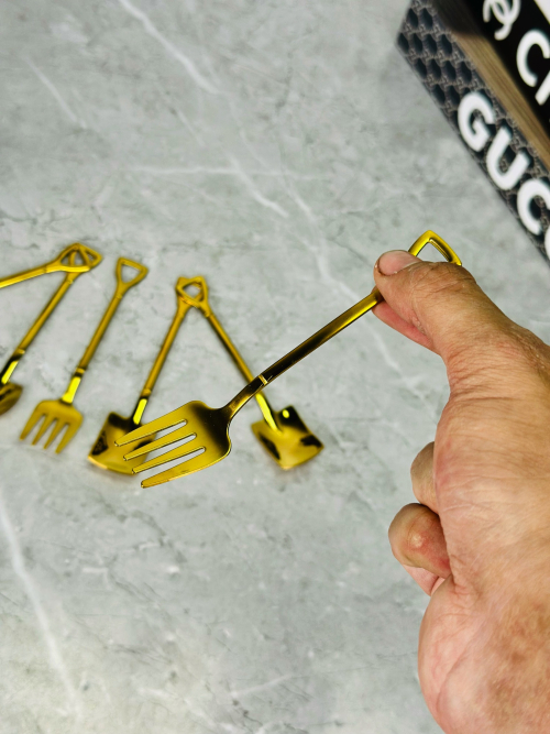 شوکات ایس کریم و طعام شکل مجرفة ذهبي وسط