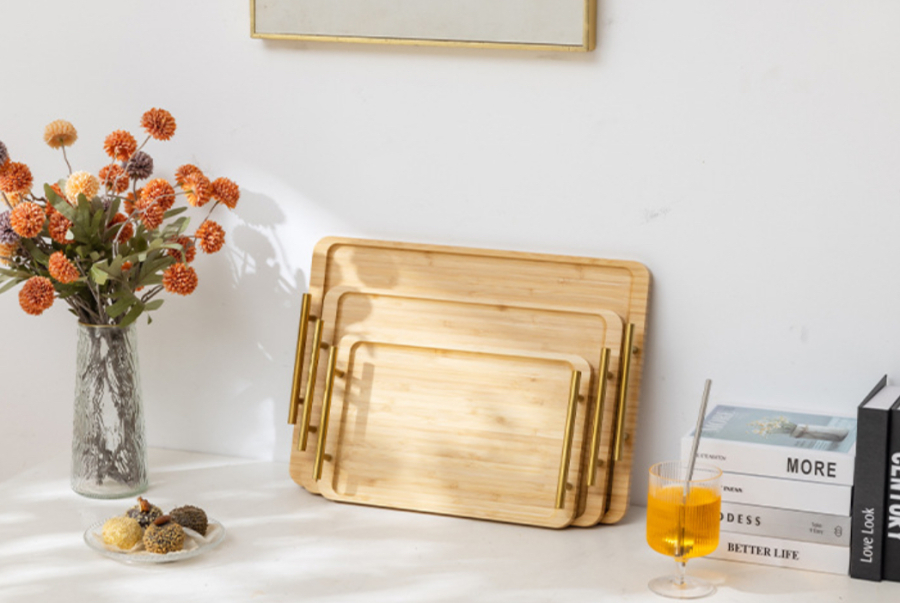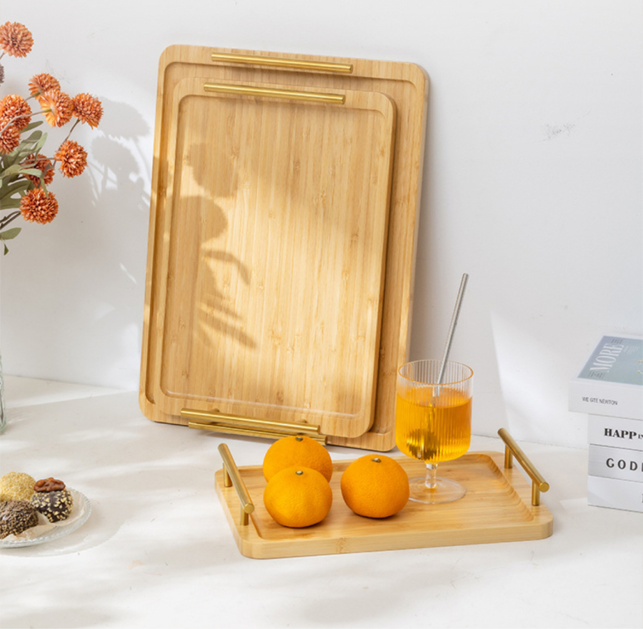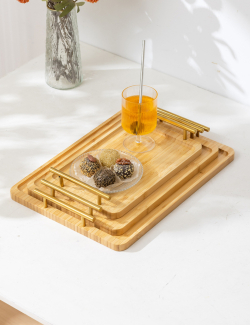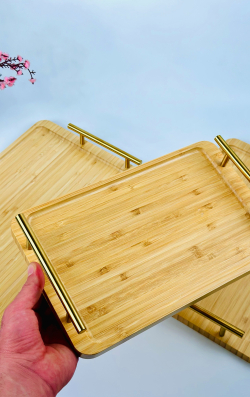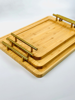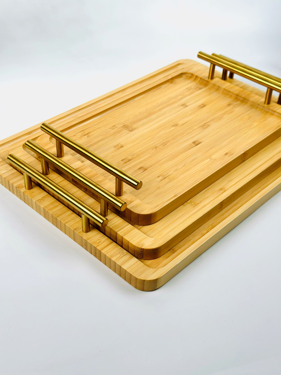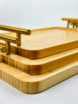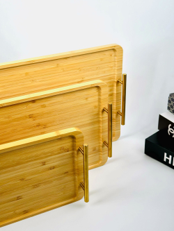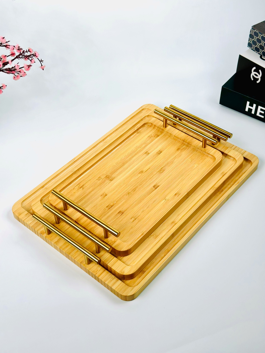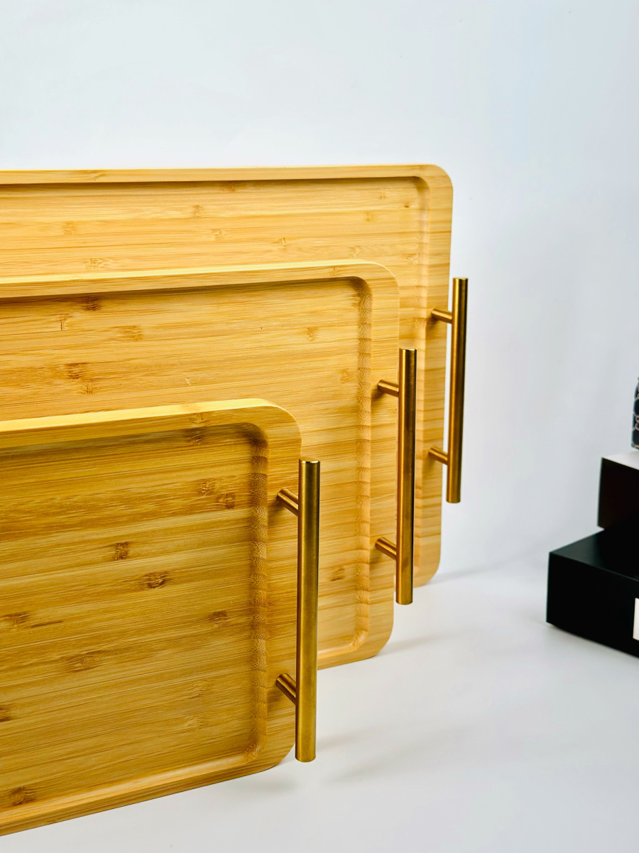 طقم صيني بامبو مستطيل ثلاثي يد ذهبي