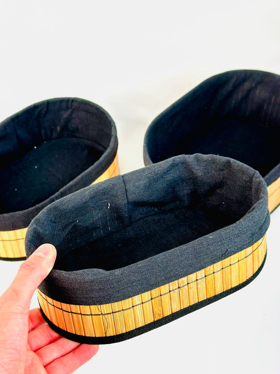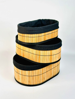 طقم سلة خوص ثلاثي بيضوي داخل اقمشة اسود
