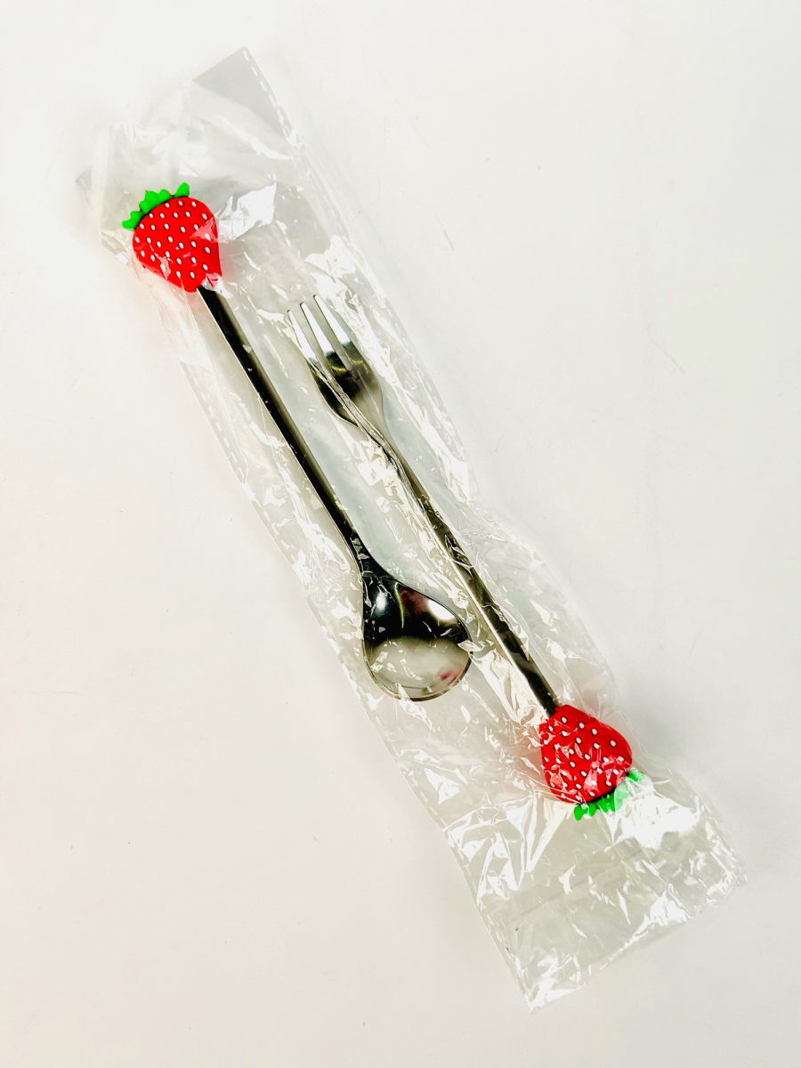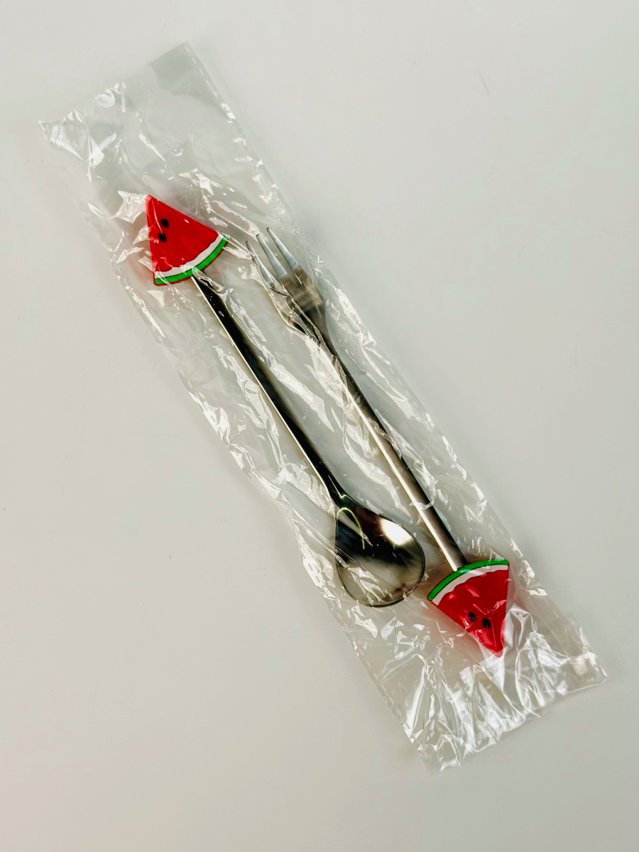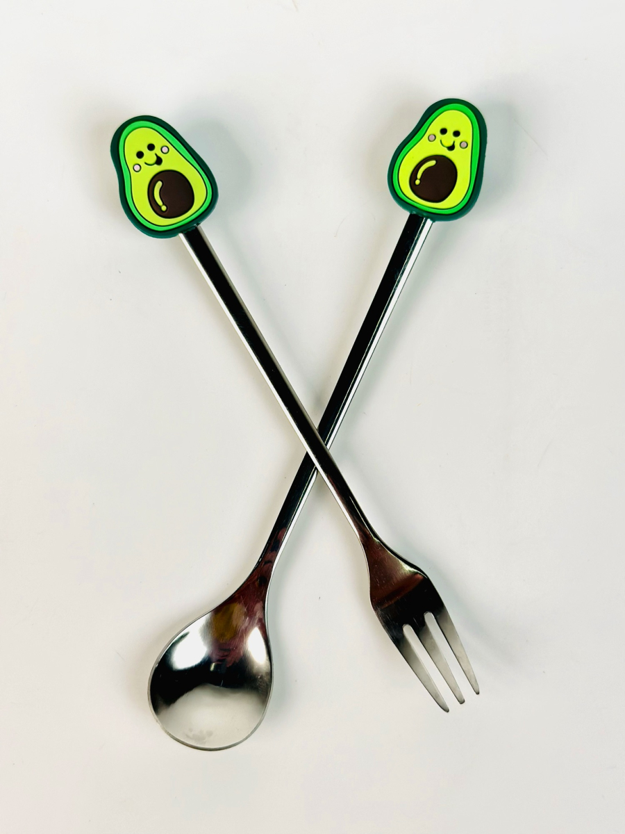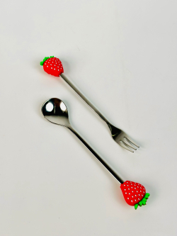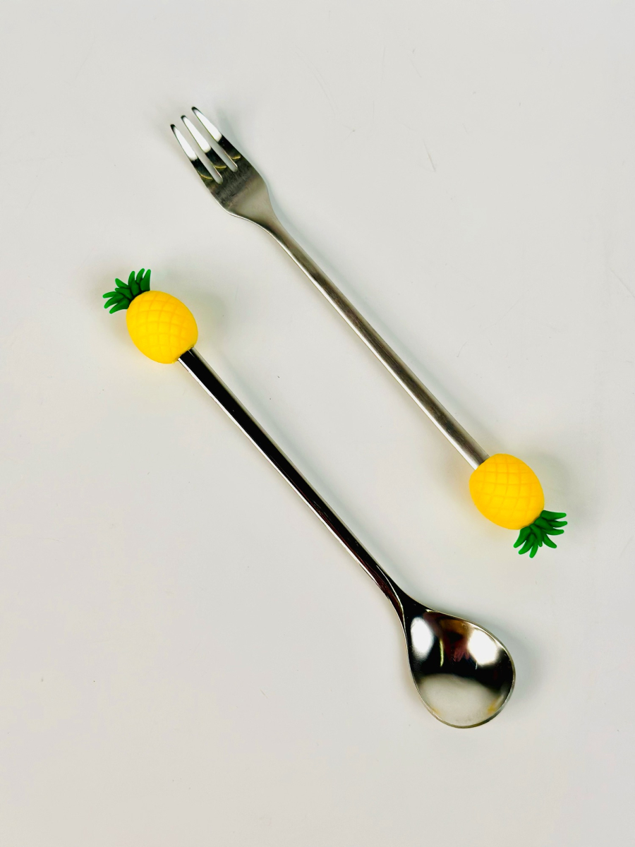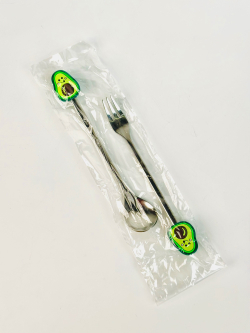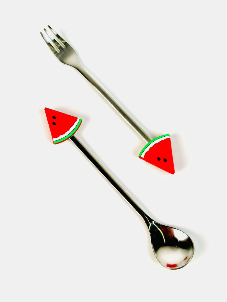 طقم شوکات وملاعق اطفال ستیل رأس سلیکۆن فواکهە