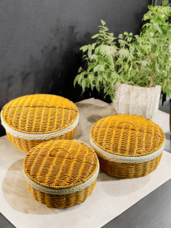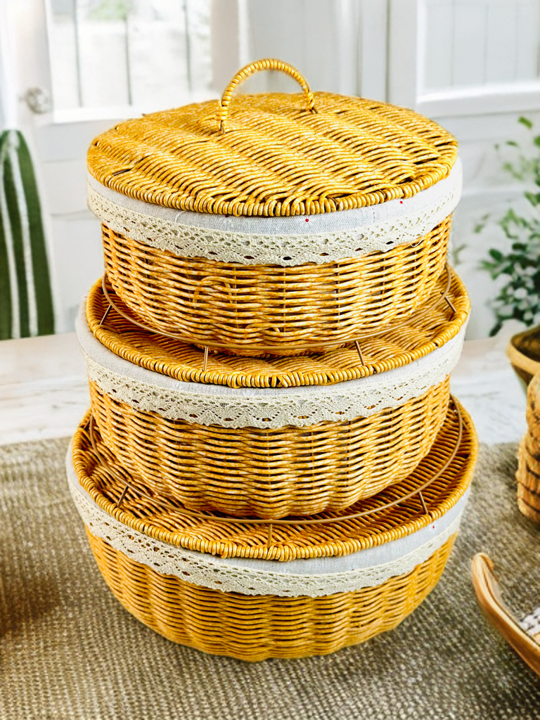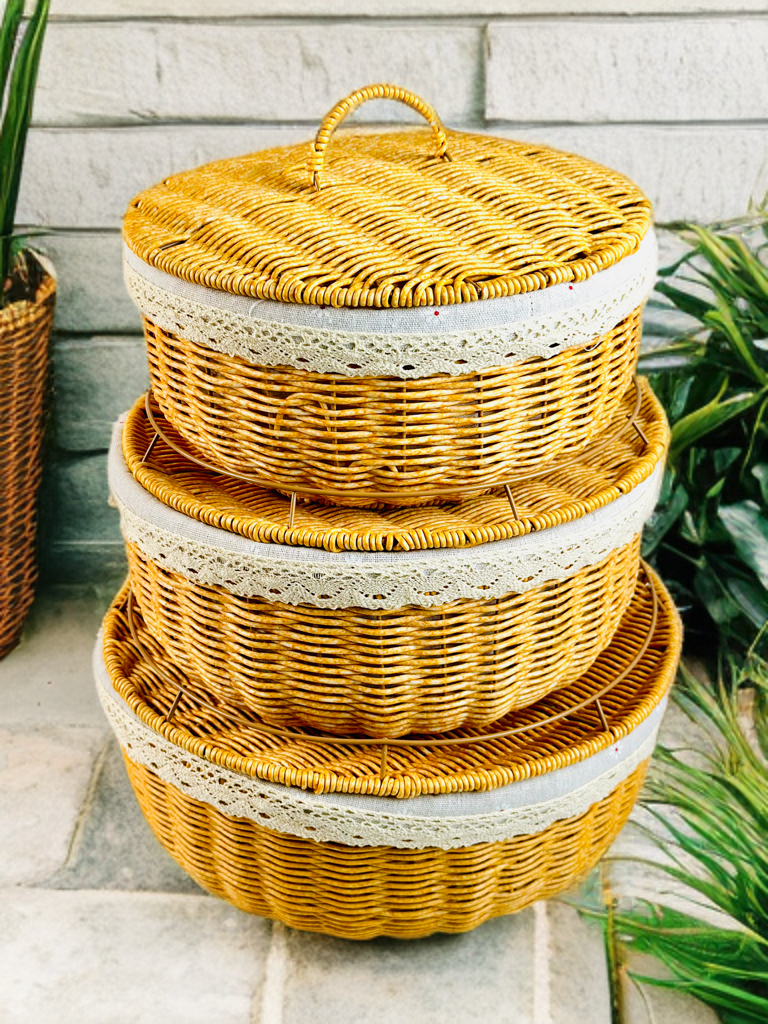 طقم سلة او صيني خوص ثلاثي دائري CH4