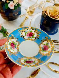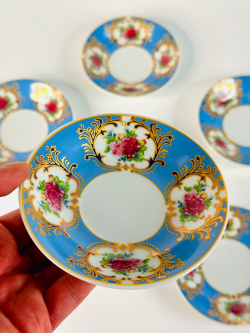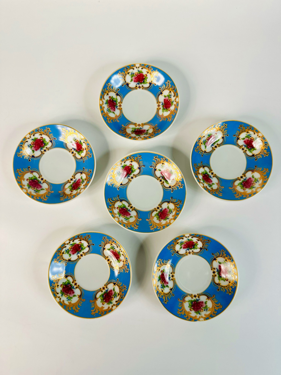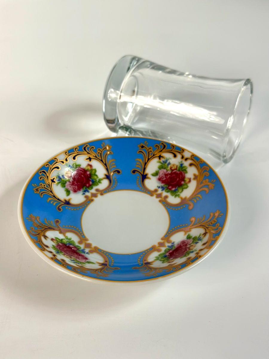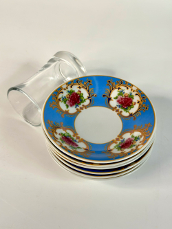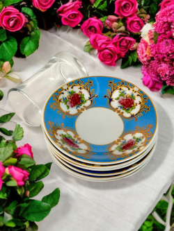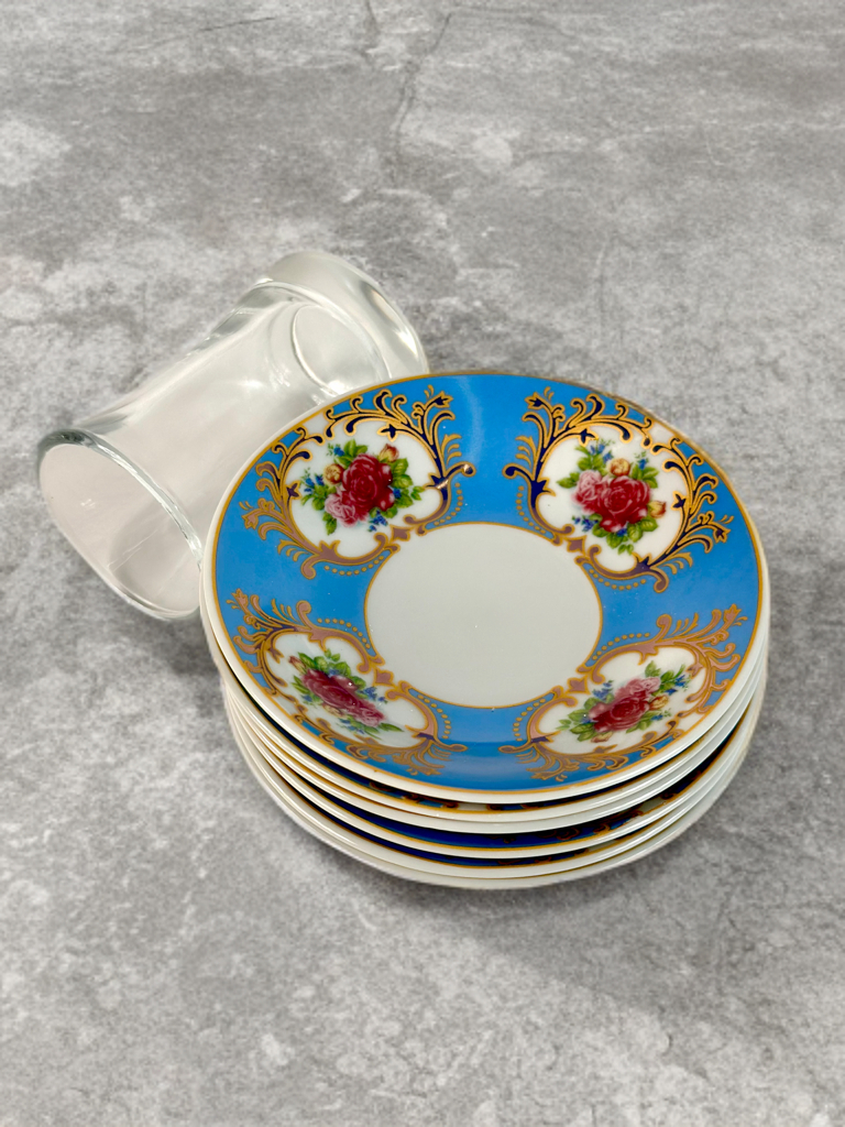 صحن استكانه سيراميك زهرة ازرق 6 عدد