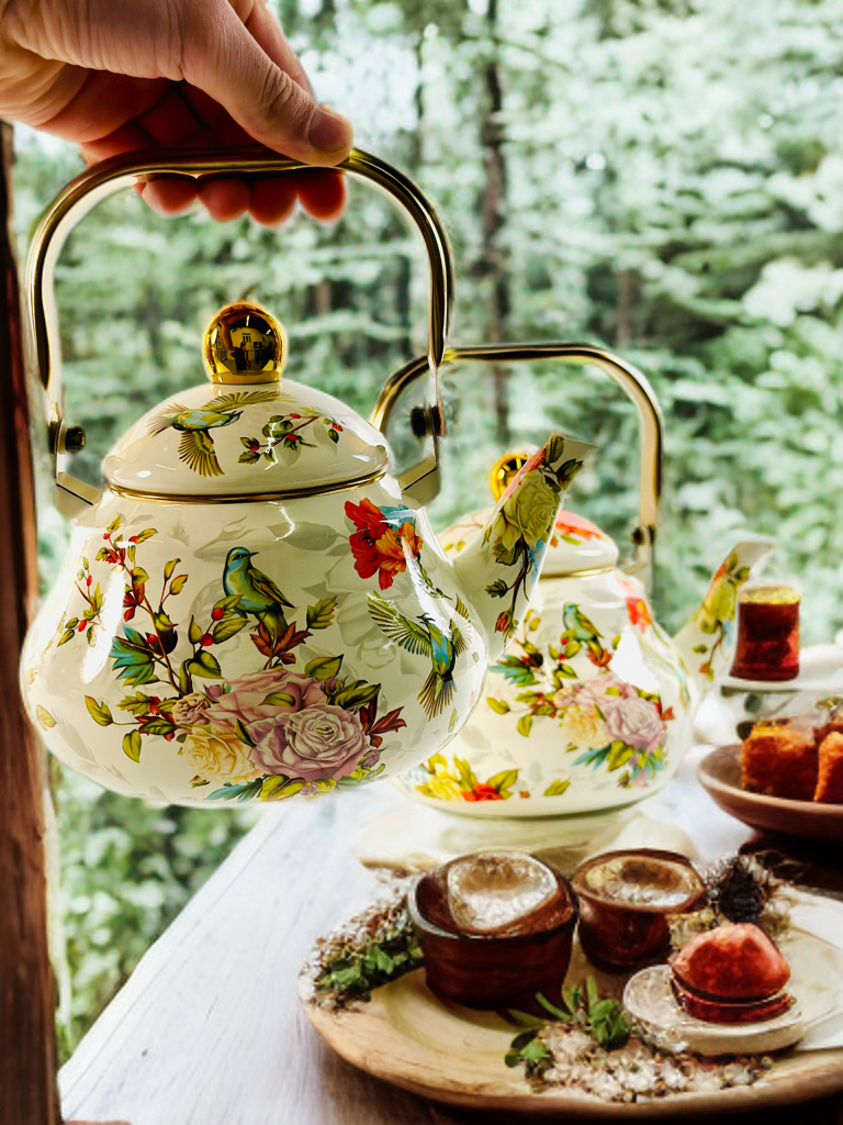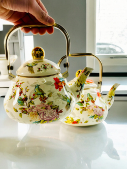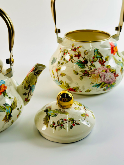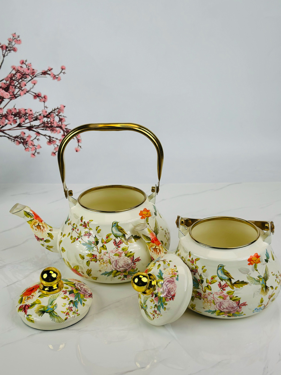طقم سكر وشايي سيراميك كبير ويه ملاعق D
